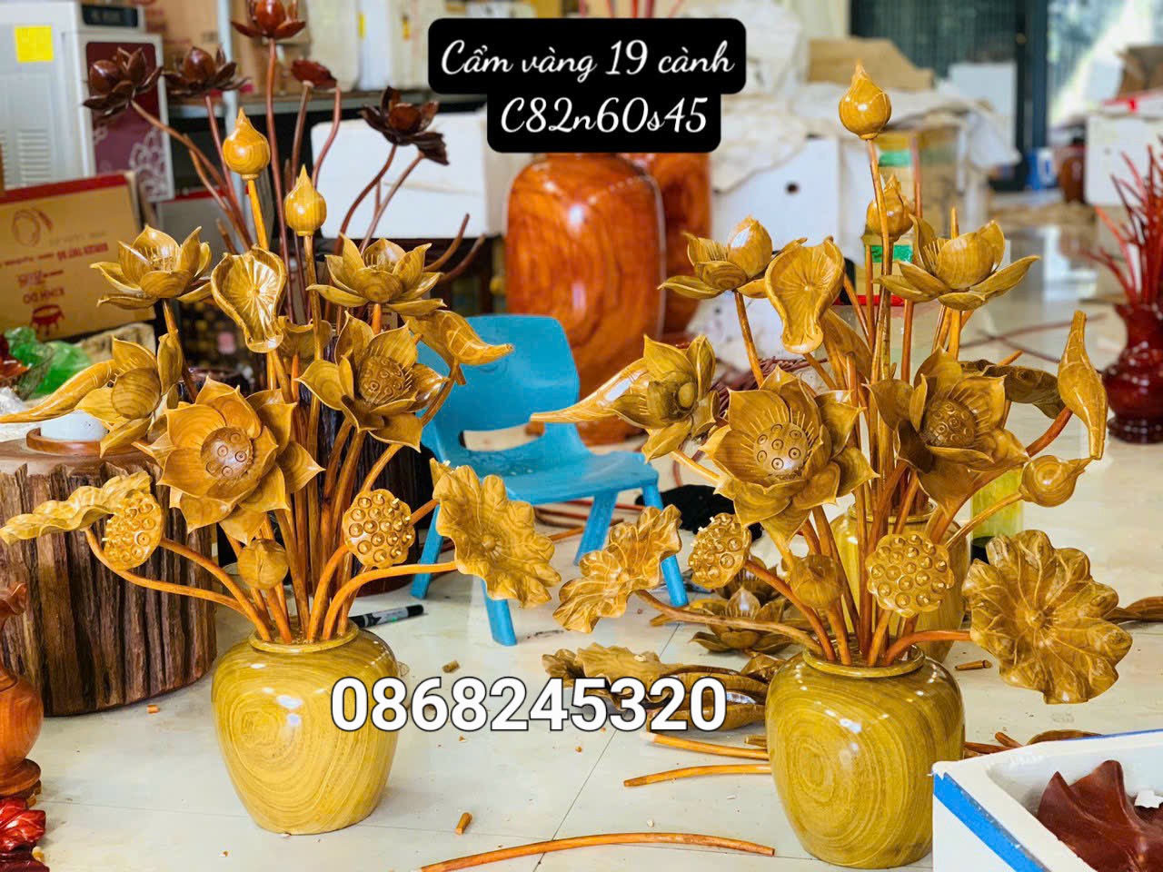 _ 1 bình hoa sen 19 bông được làm bằng chất liệu gổ cẩm vàng tự nhiên 100%_ Kt thước cao tổng 82 xèo rộng 60 sâu 45cm _ Bình hoa sen được chế tác và hoàn thiện do bàn tay khối óc tài hoa .Từ những n...