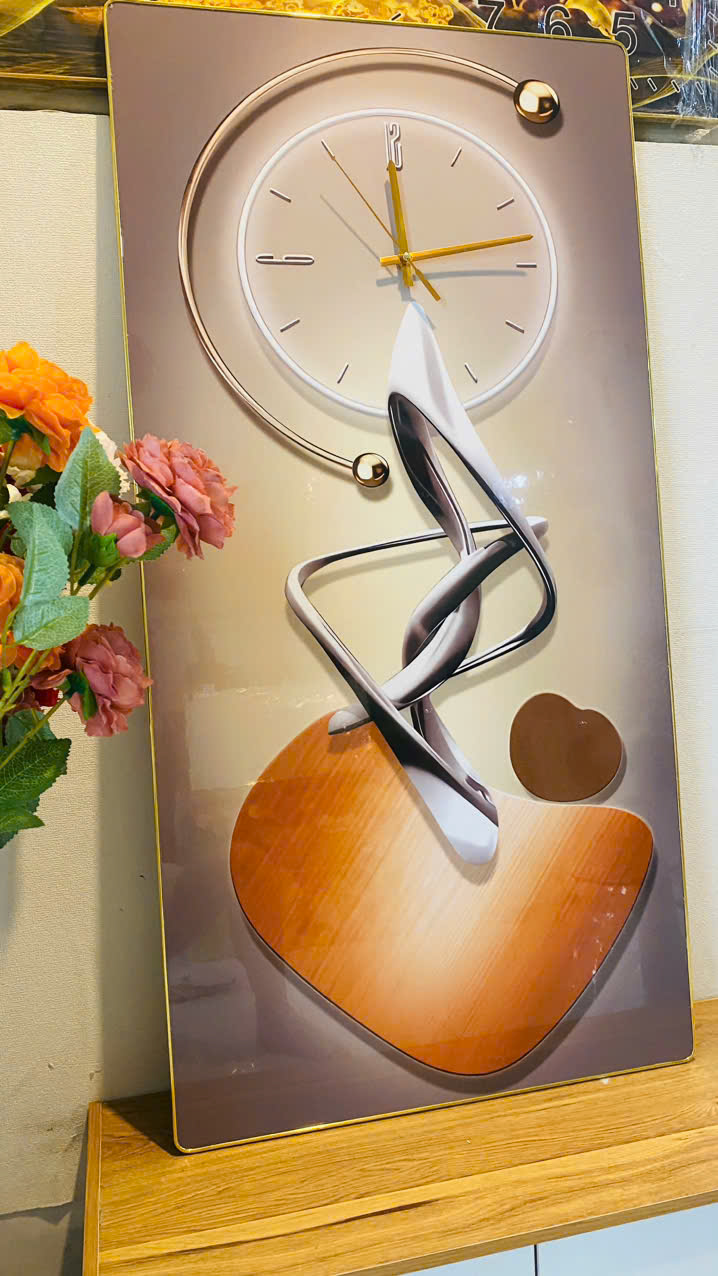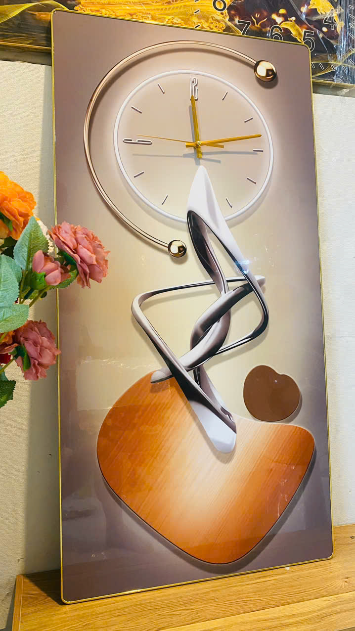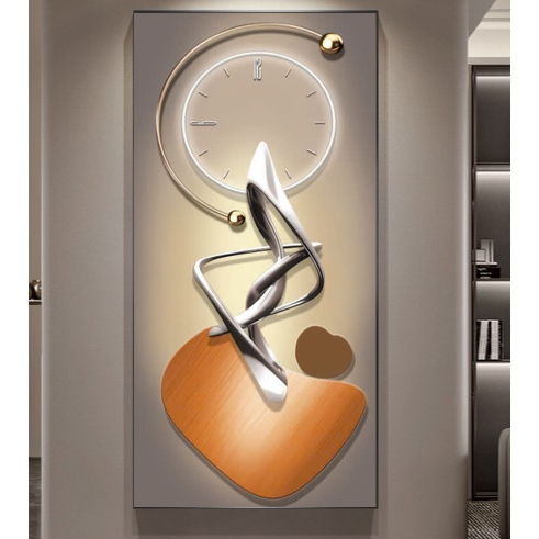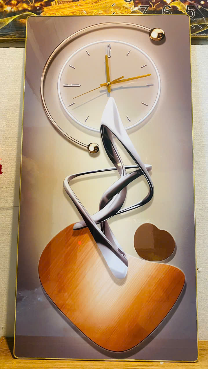 Tranh đồng hồ treo tường tráng gương cách điệu họa tiết màu cam