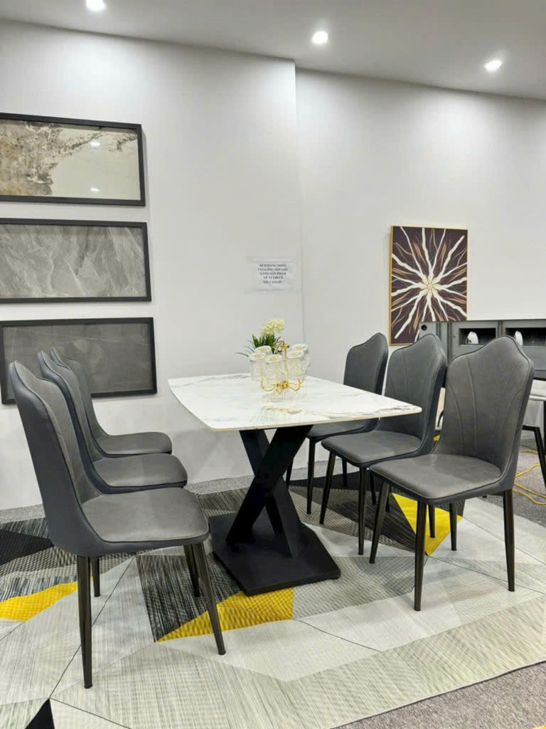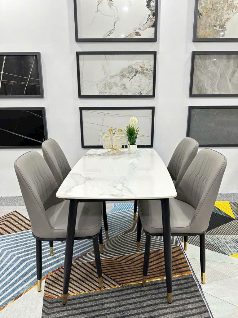 Bàn mặt đá kèm ghế bọc da chân sắt sơn tĩnh điện là một trong những lựa chọn hàng đầu cho khách hàng ưa chuộng phong cách châu âu vừa sang trọng, hiện đại mà còn rất tinh tế.