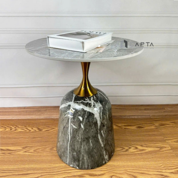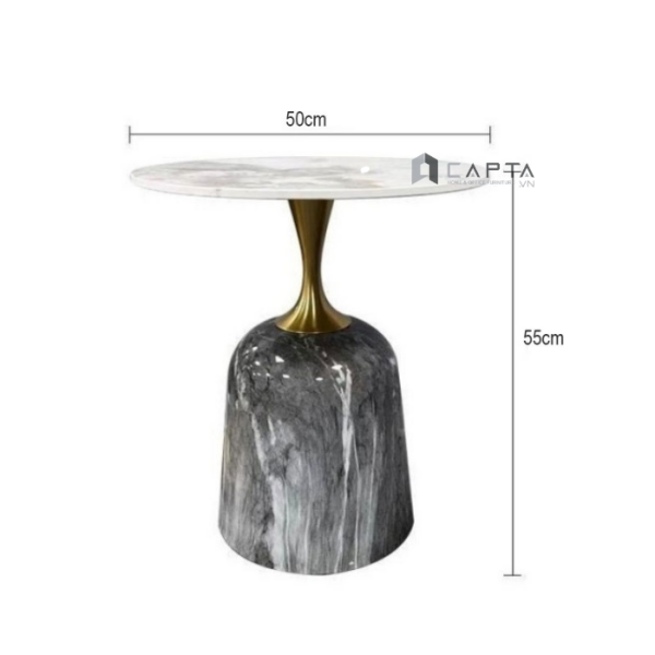 Bàn décor mặt đá nhỏ chắc chắn chống trầy, chống xước, chống thấm nước hiệu quả. Với màu sắc mặt bàn đặc sắc, nổi bật trắng vân, xám vân , đen giúp chúng phù hợp với mọi không gian nội thất. Từ mặt bàn tới chân bàn được nối bằng thanh inox mạ vàng nổi bật, chắc chắn.