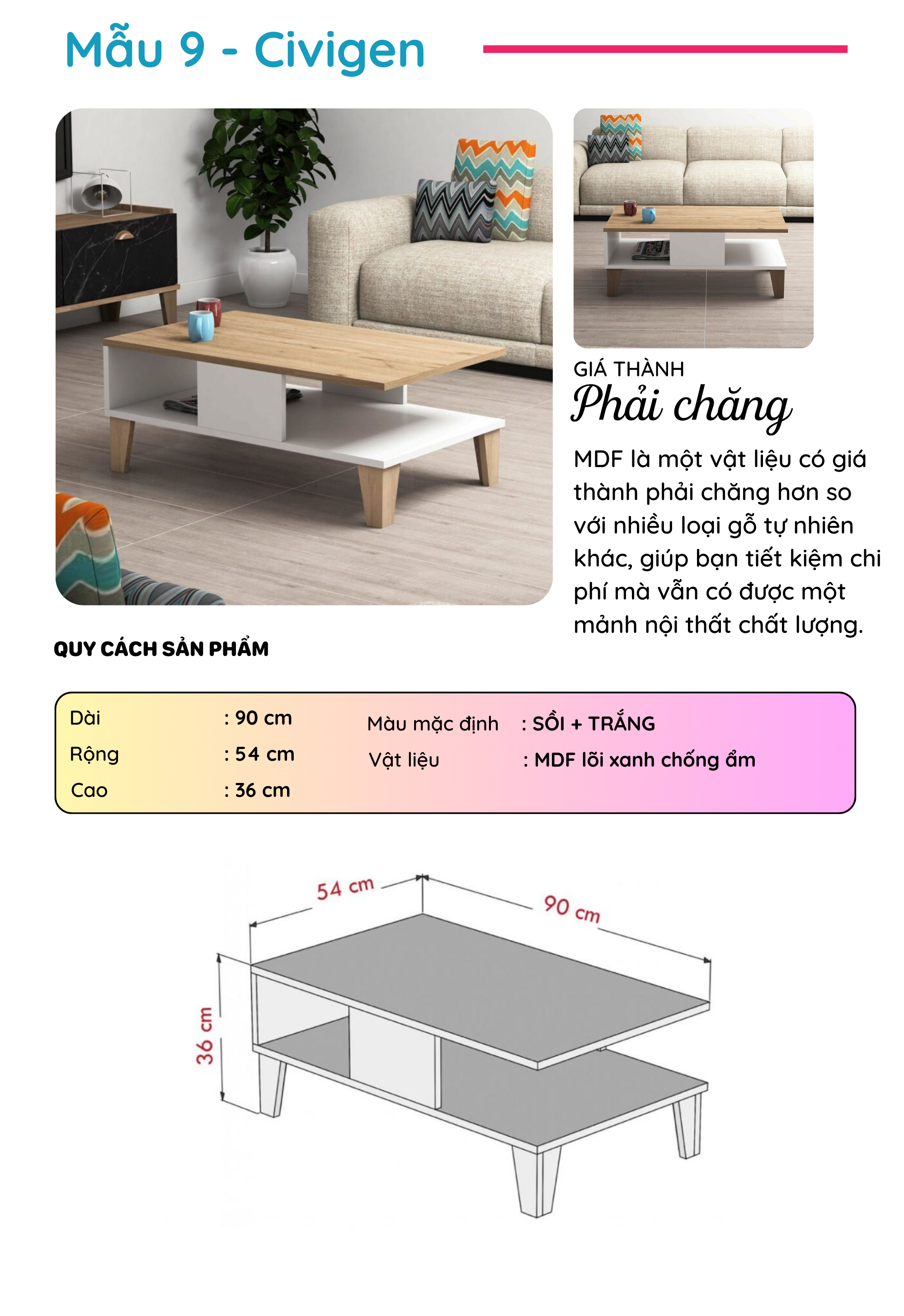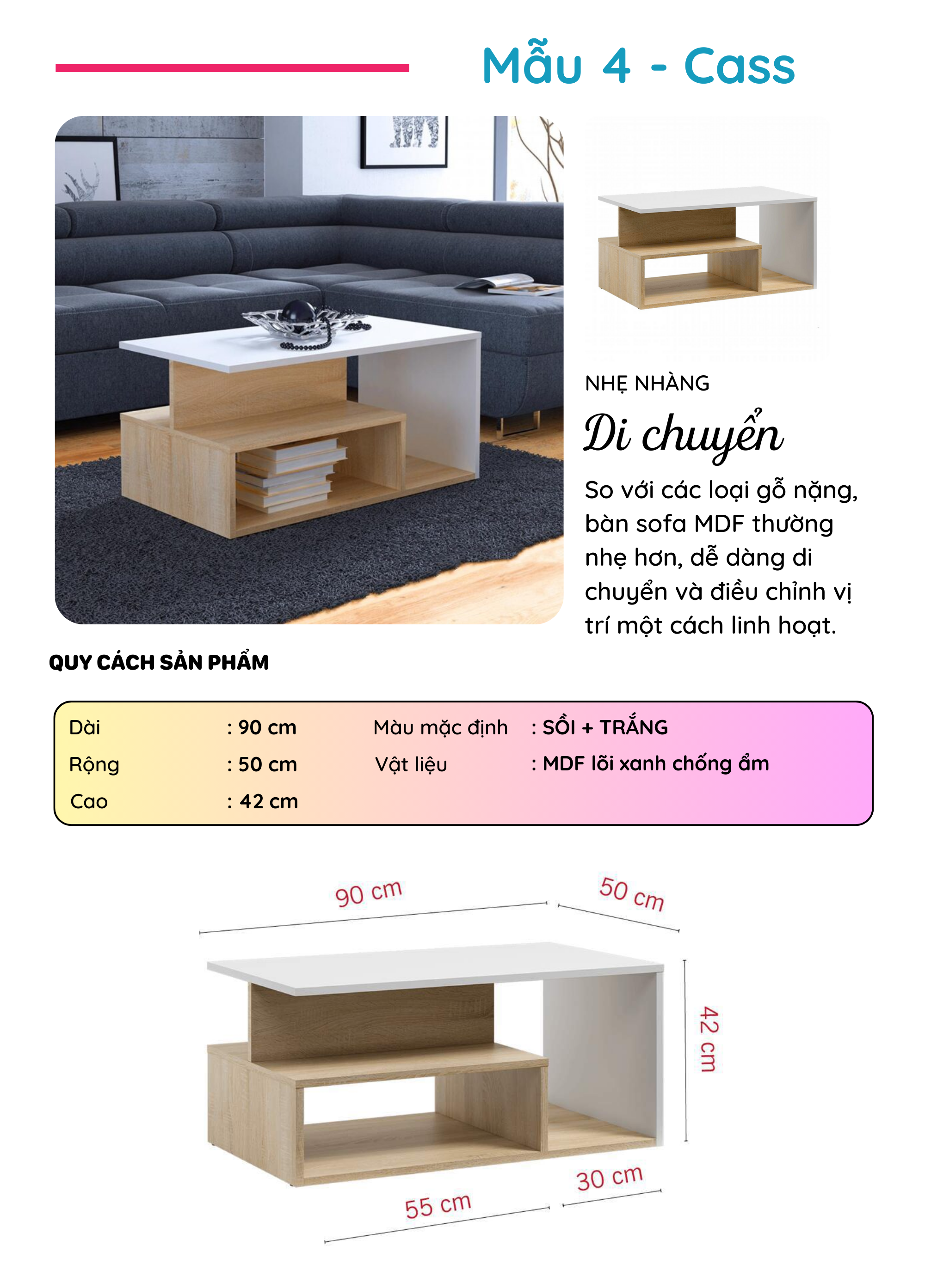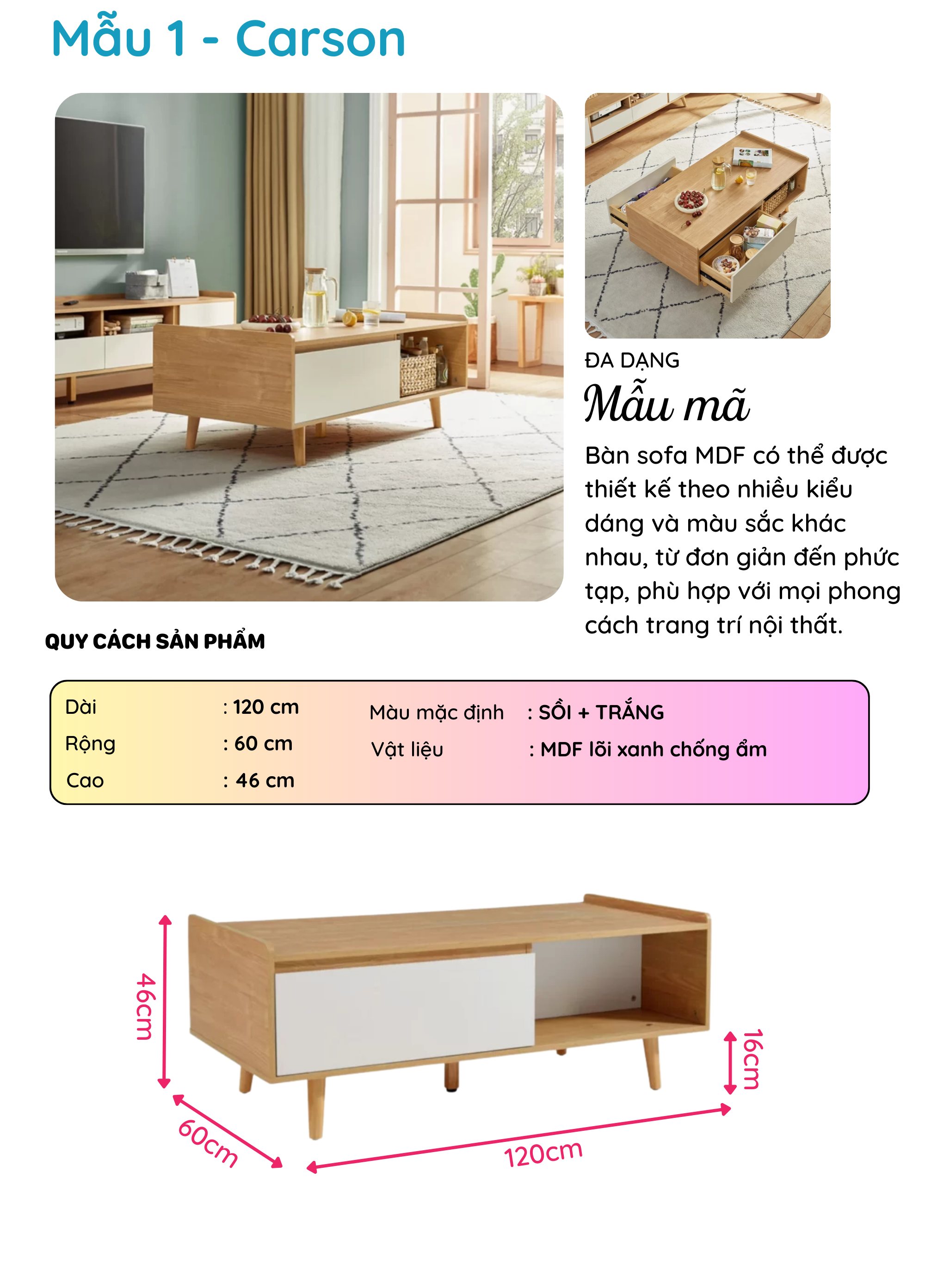Bàn Sofa gỗ phong cách hiện đại thương hiệu SMLIFE (nhiều mẫu, có thể đổi size và màu sắc)