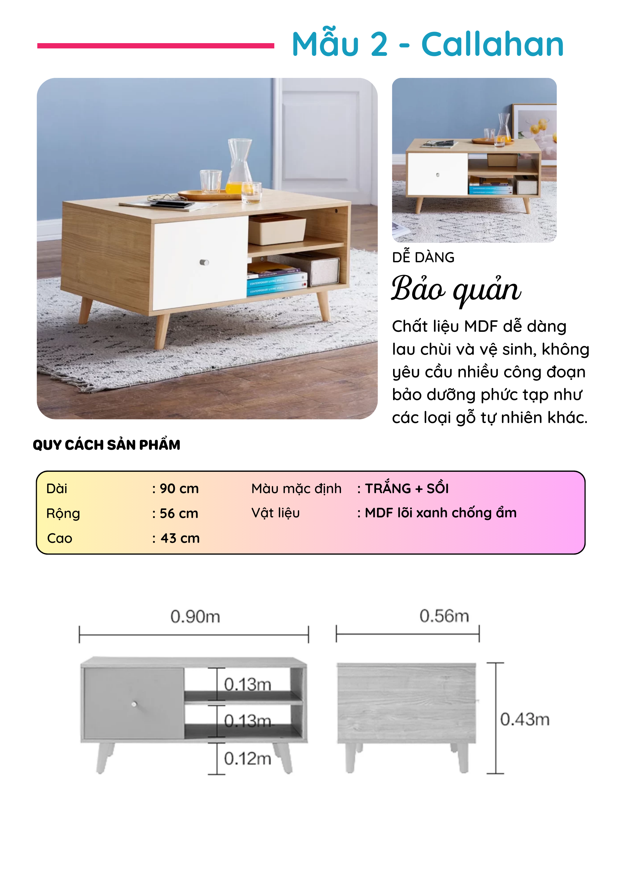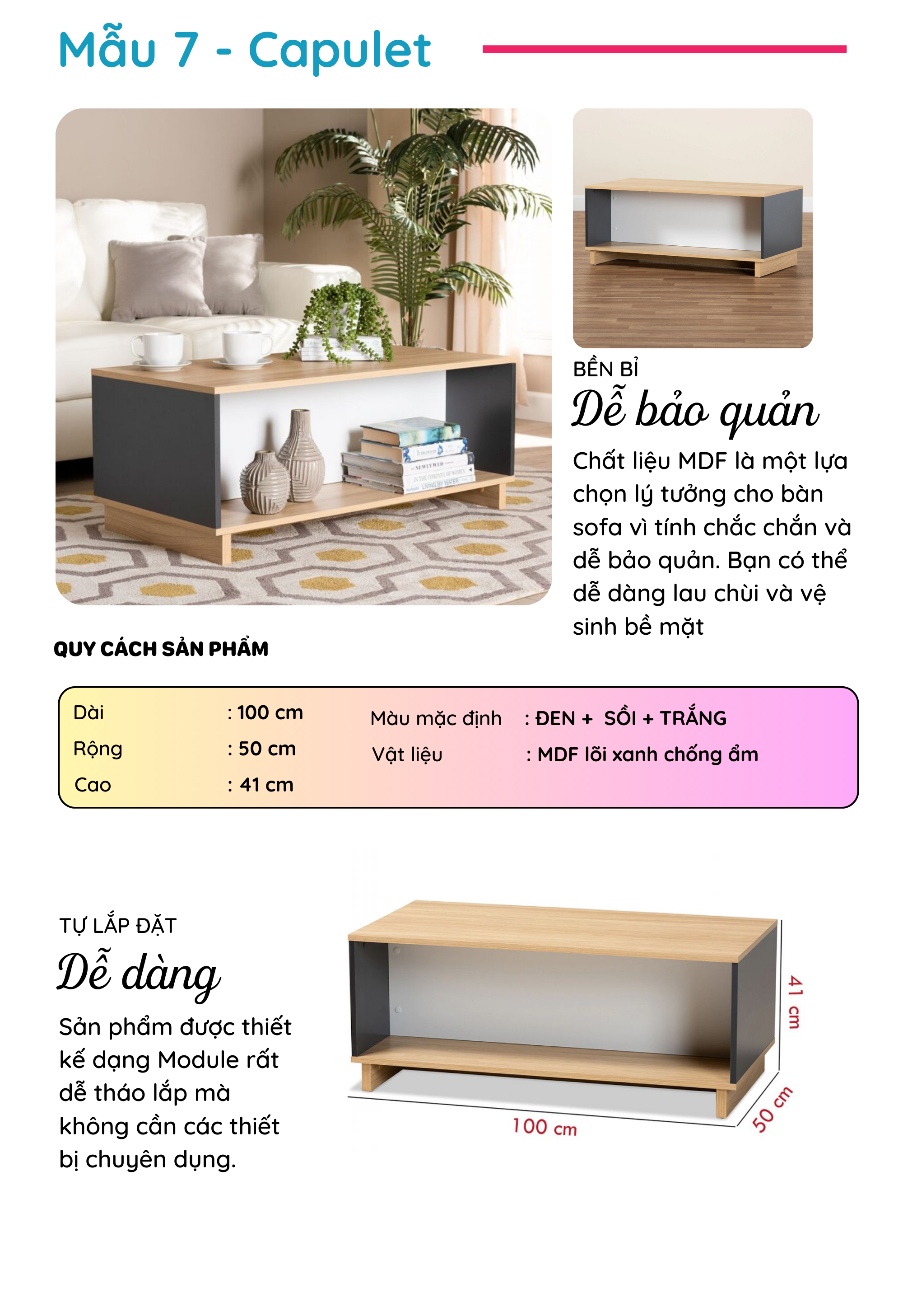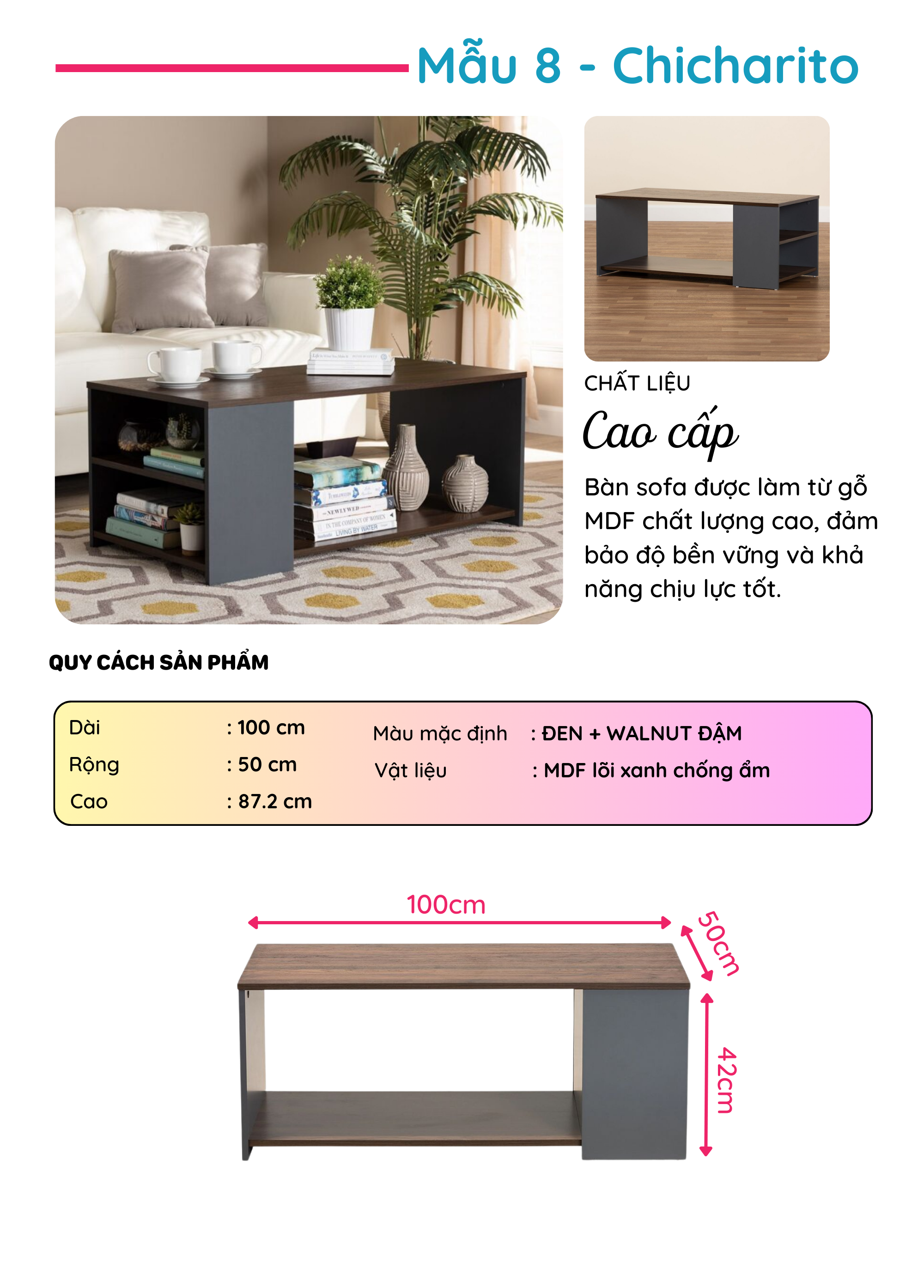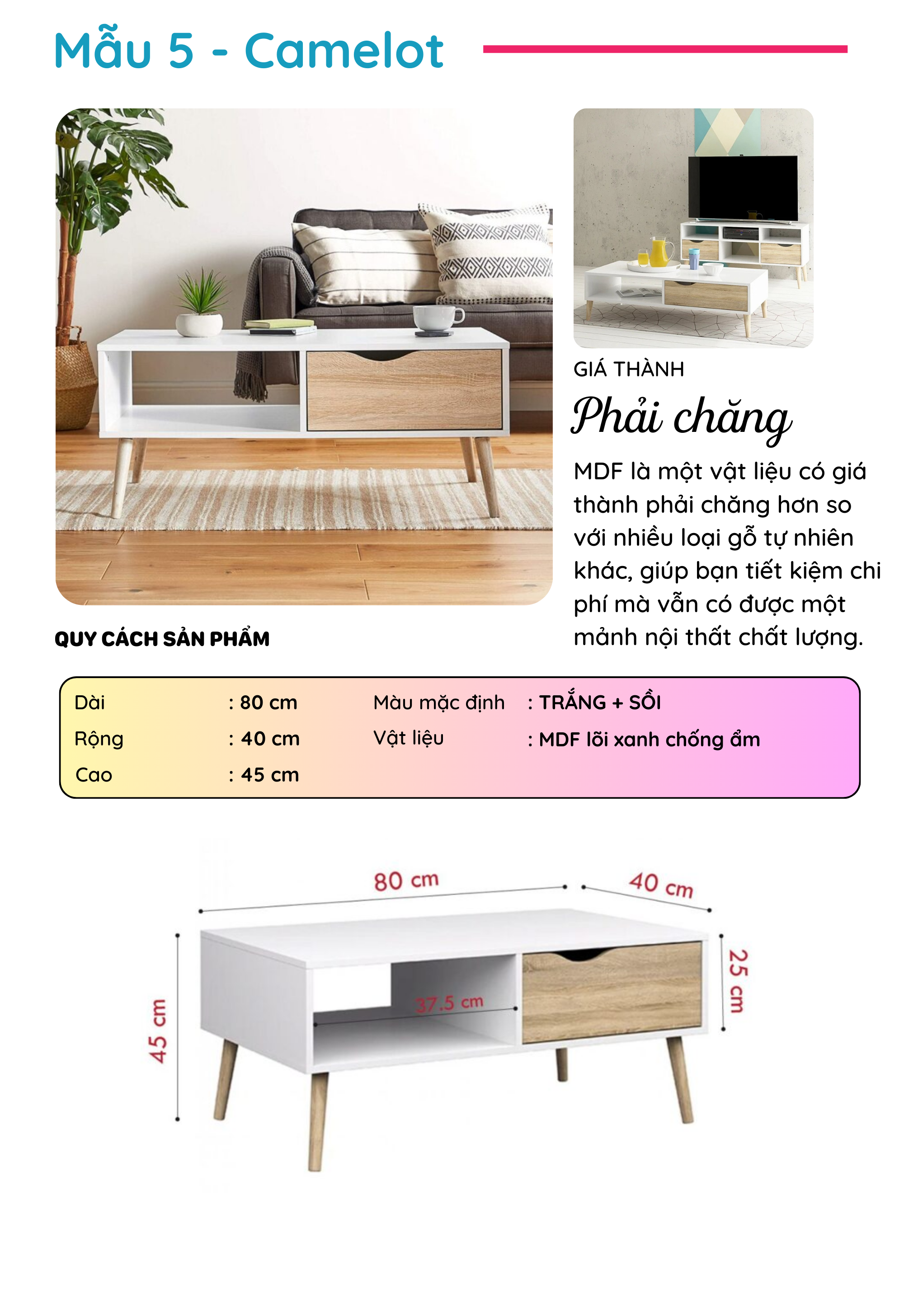 Bàn Sofa gỗ phong cách hiện đại thương hiệu SMLIFE (nhiều mẫu, có thể đổi size và màu sắc)
