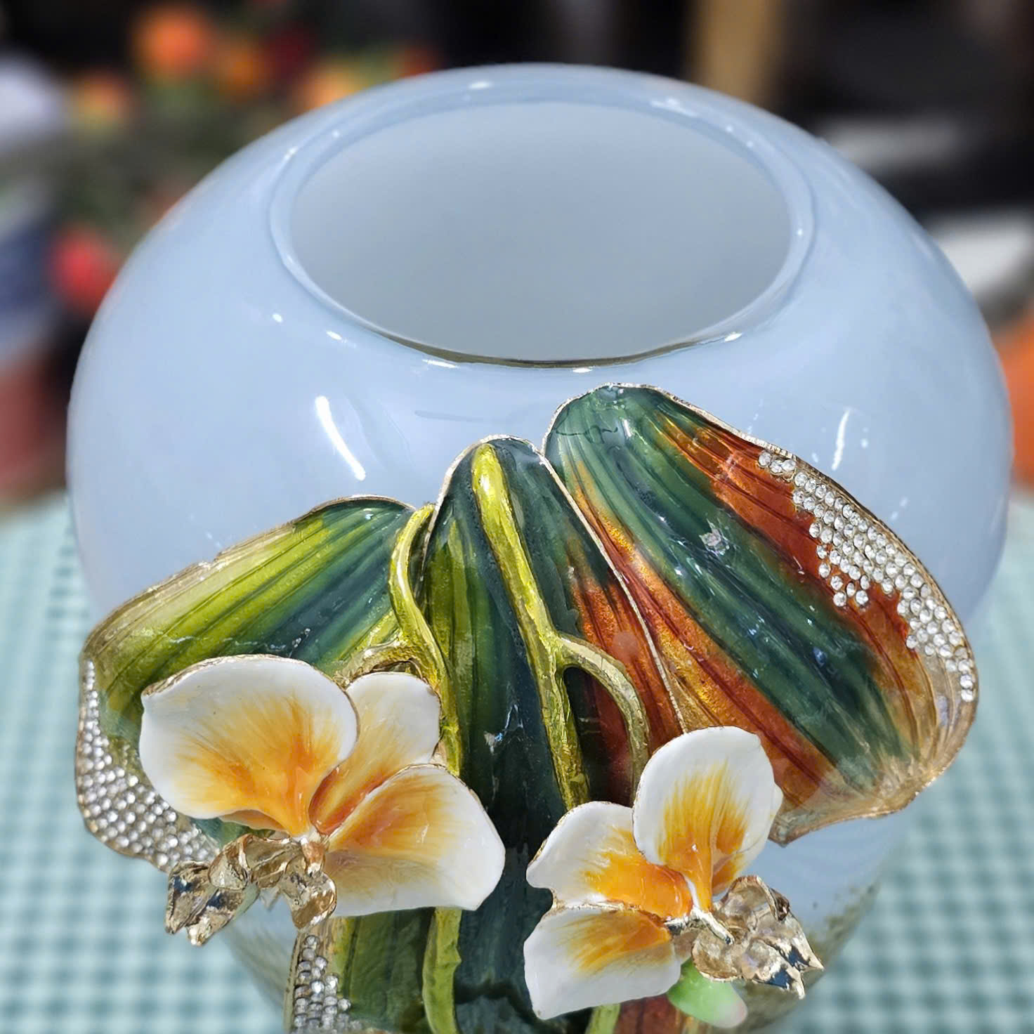 Là một tác phẩm nghệ thuật tinh tế, mang đến vẻ đẹp sang trọng và độc đáo cho không gian sống của bạn. Với sự kết hợp hoàn hảo giữa chất liệu thủy tinh tráng men và hoa đính bằng đồng phủ bóng, sản phẩm chắc chắn sẽ là điểm nhấn tuyệt vời trong mọi không gian.