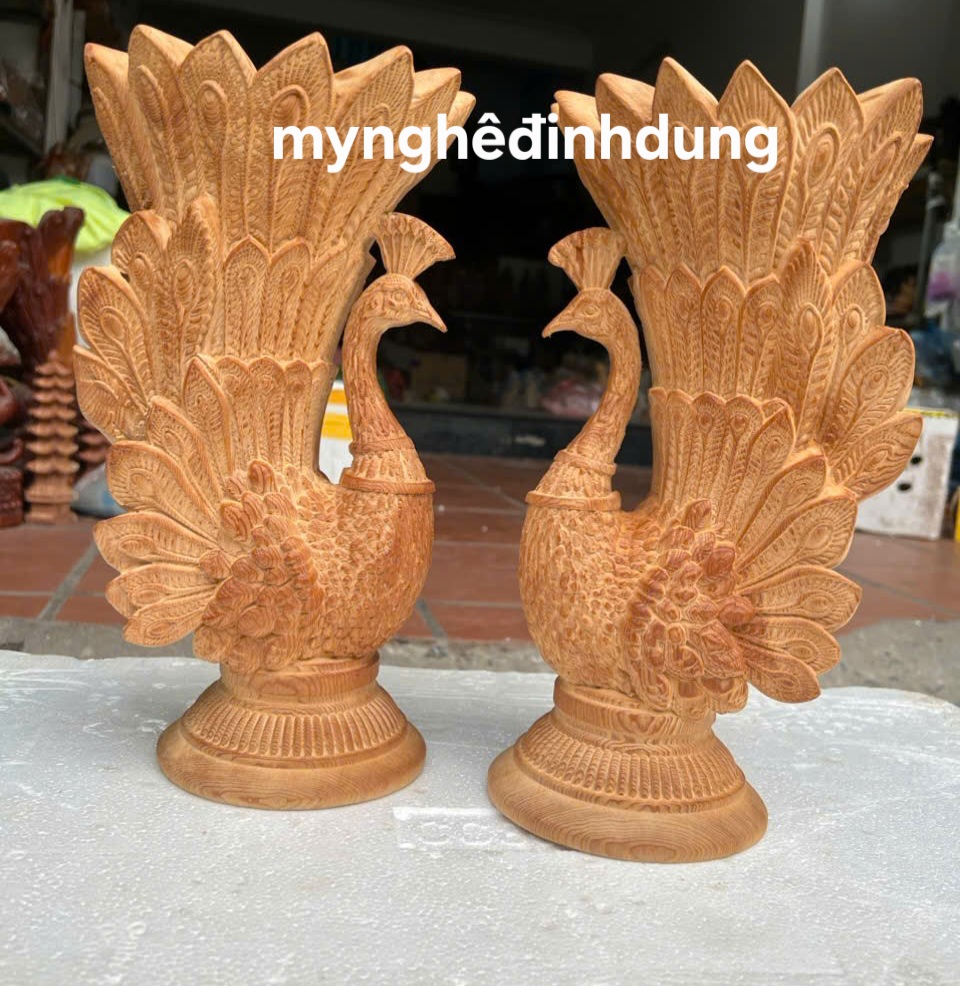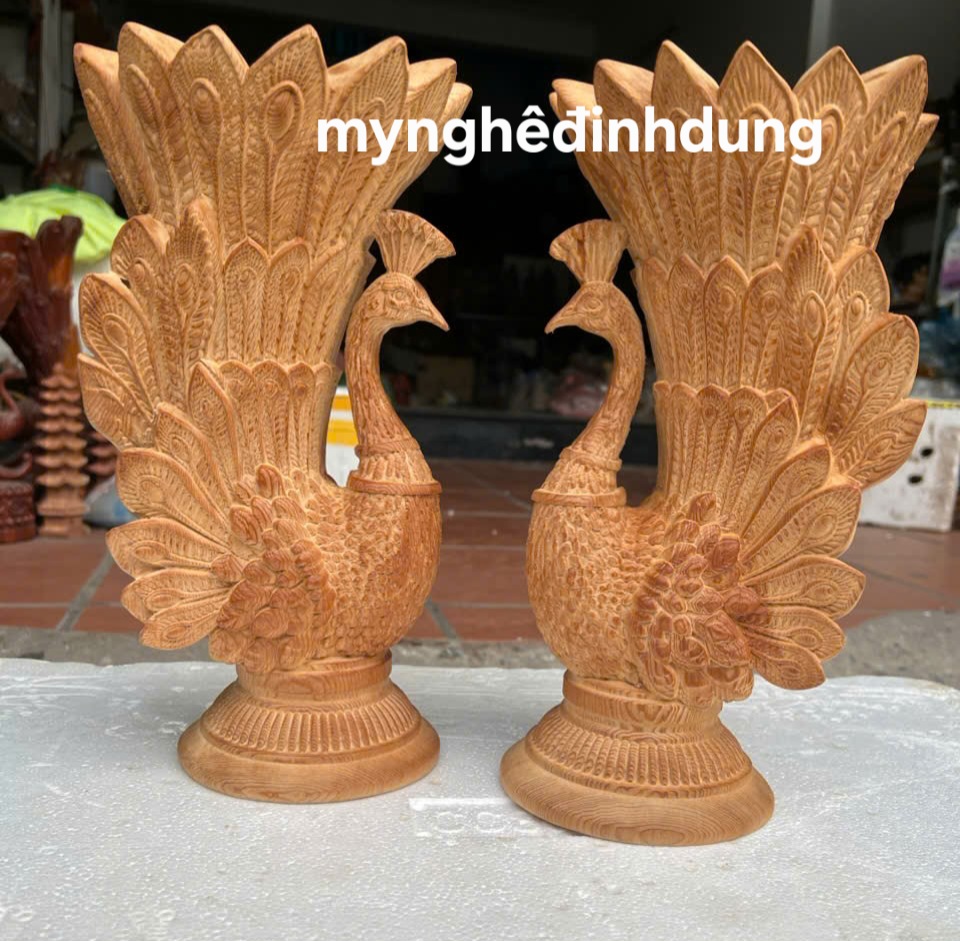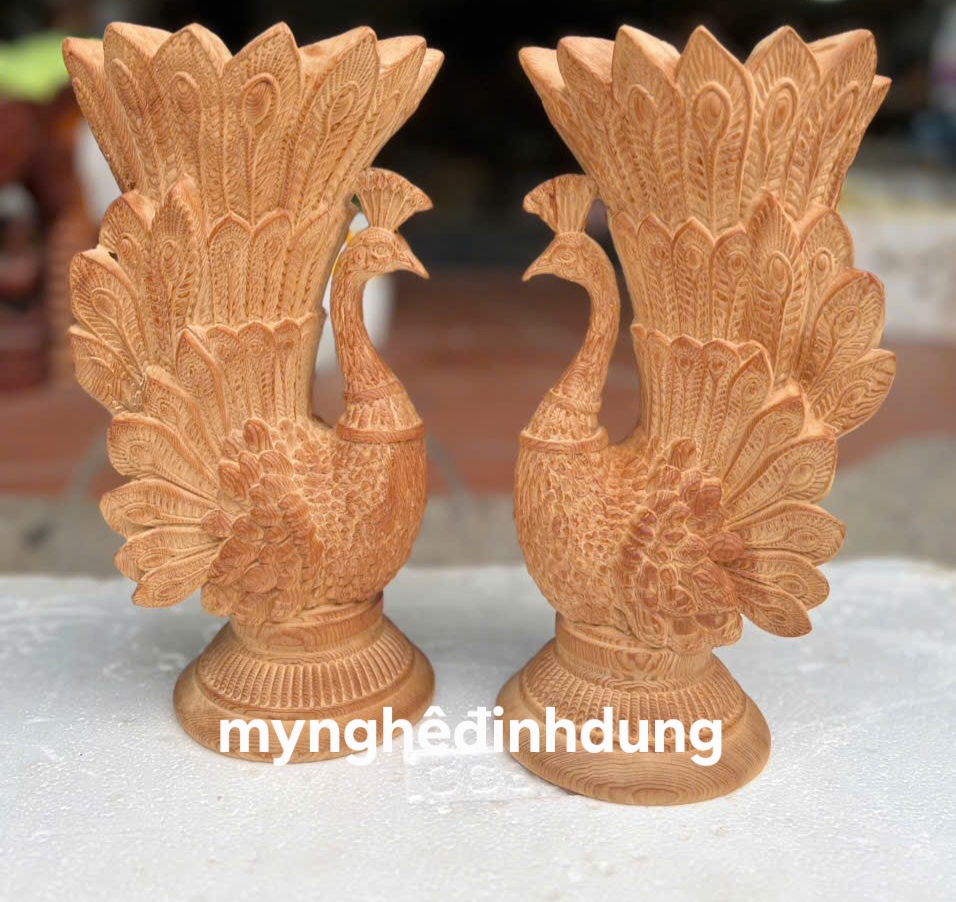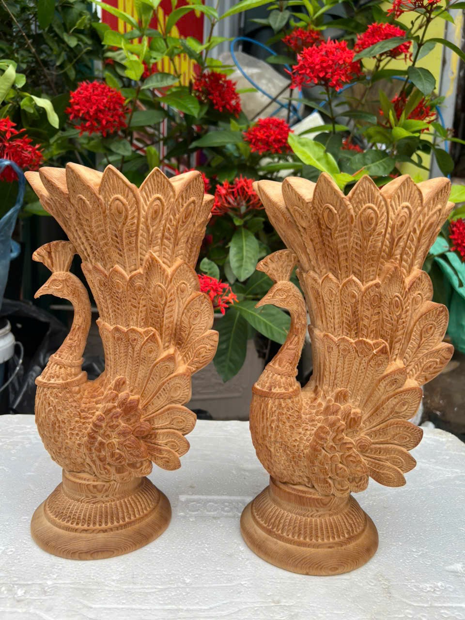 Giới thiệu Cặp chim công cắm hoa bằng gỗ ngọc Am thơm nức cao 30x16x12cm
