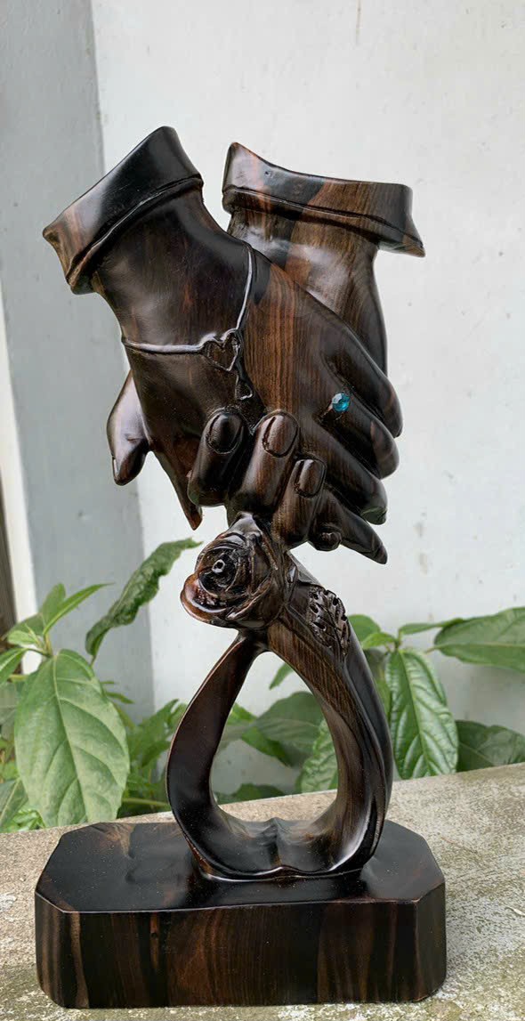 _ Cặp tượng phu thê viên mãn được làm bằng chất liệu gỗ mun hoa liền khối tự nhiên 100%