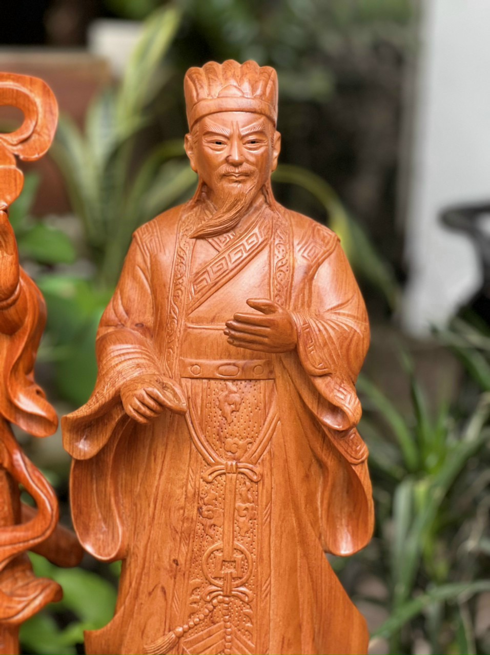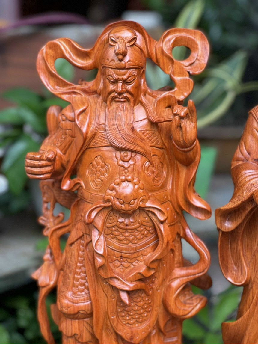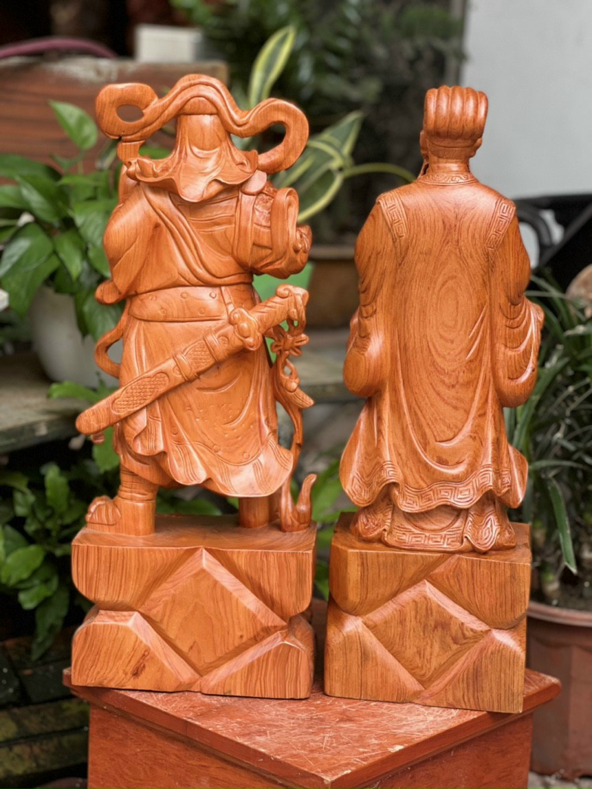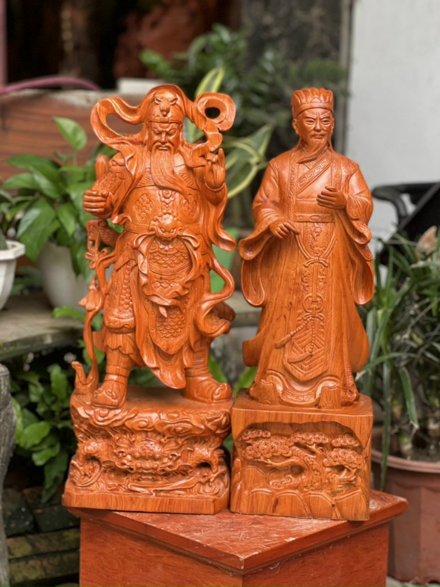 Giới thiệu Cặp tượng quan văn ,quan võ khổng minh ( gia cát lượng ) Và quan công bằng gỗ hương đá kt cao 60cm