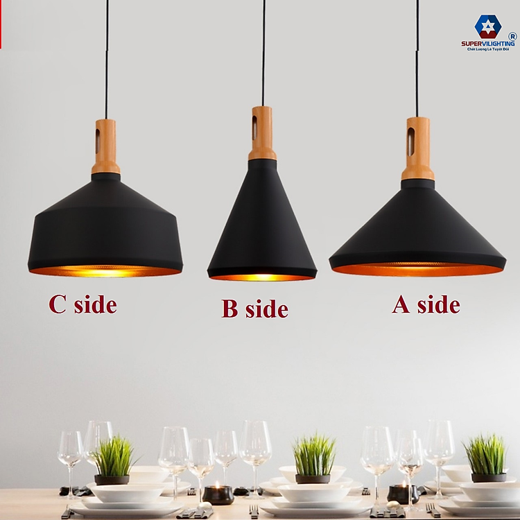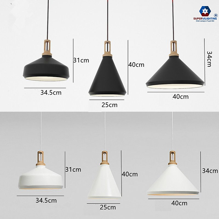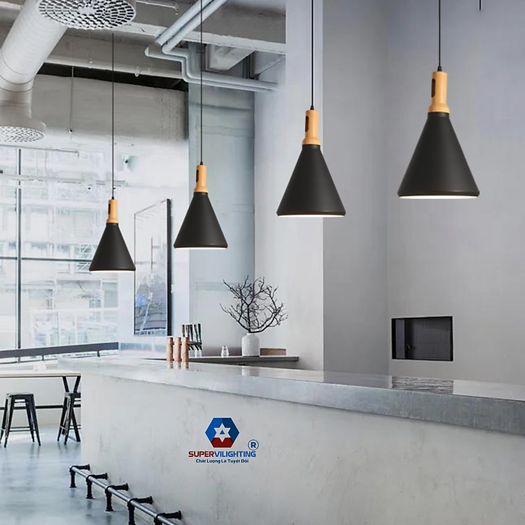Đèn thả decor cho bàn ăn có thiết kế hình nón với chuôi gỗ đơn giản & thanh lịch. Đem đến vẻ đẹp ấn tượng cho không gian của bạn. Mẫu đèn thả có 2 màu sắc đen và trắng.