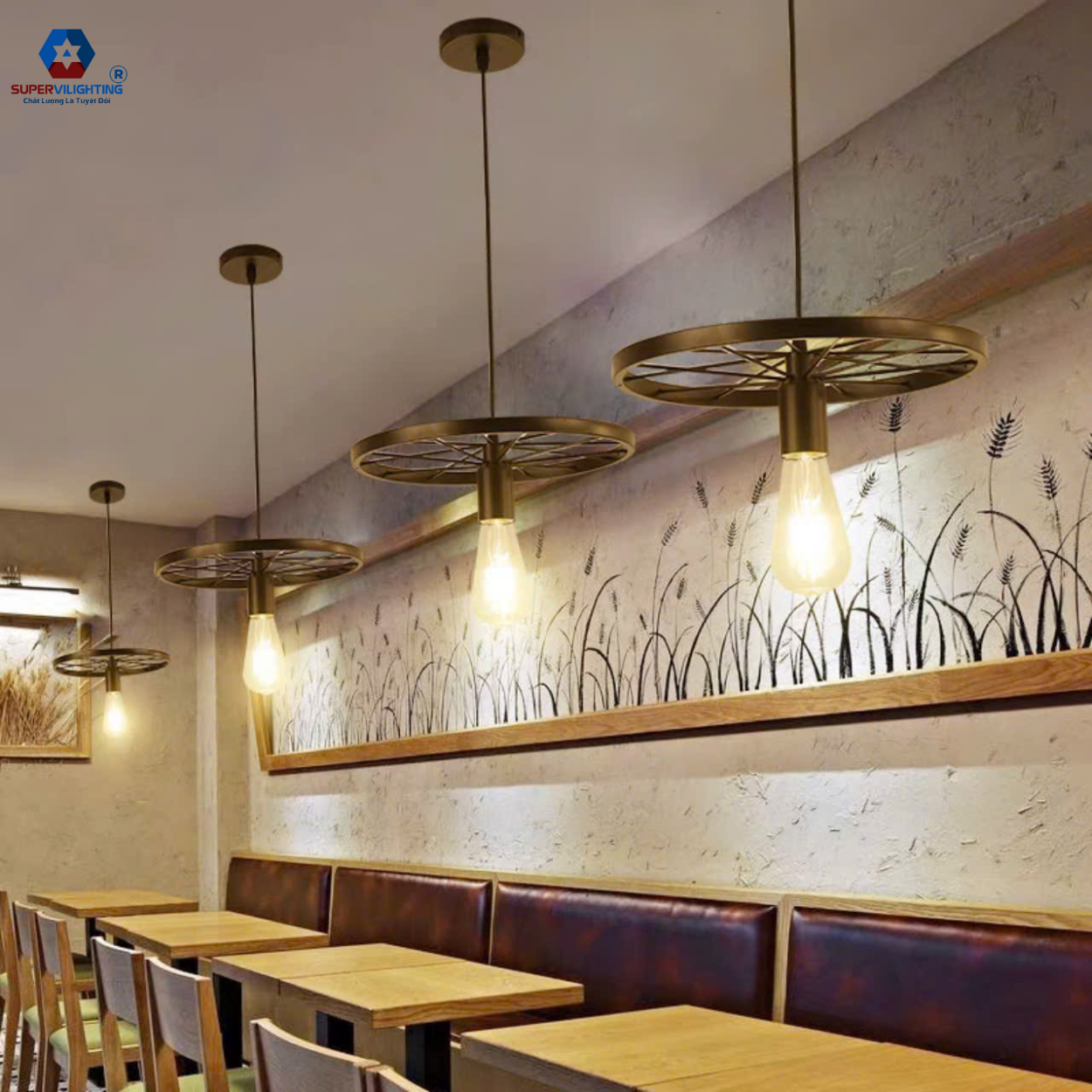 Đèn thả trần quán cafe của shop đang được ưa chuộng trên thị trường với độ tán quang rộng cho phòng khoảng 20m-30m