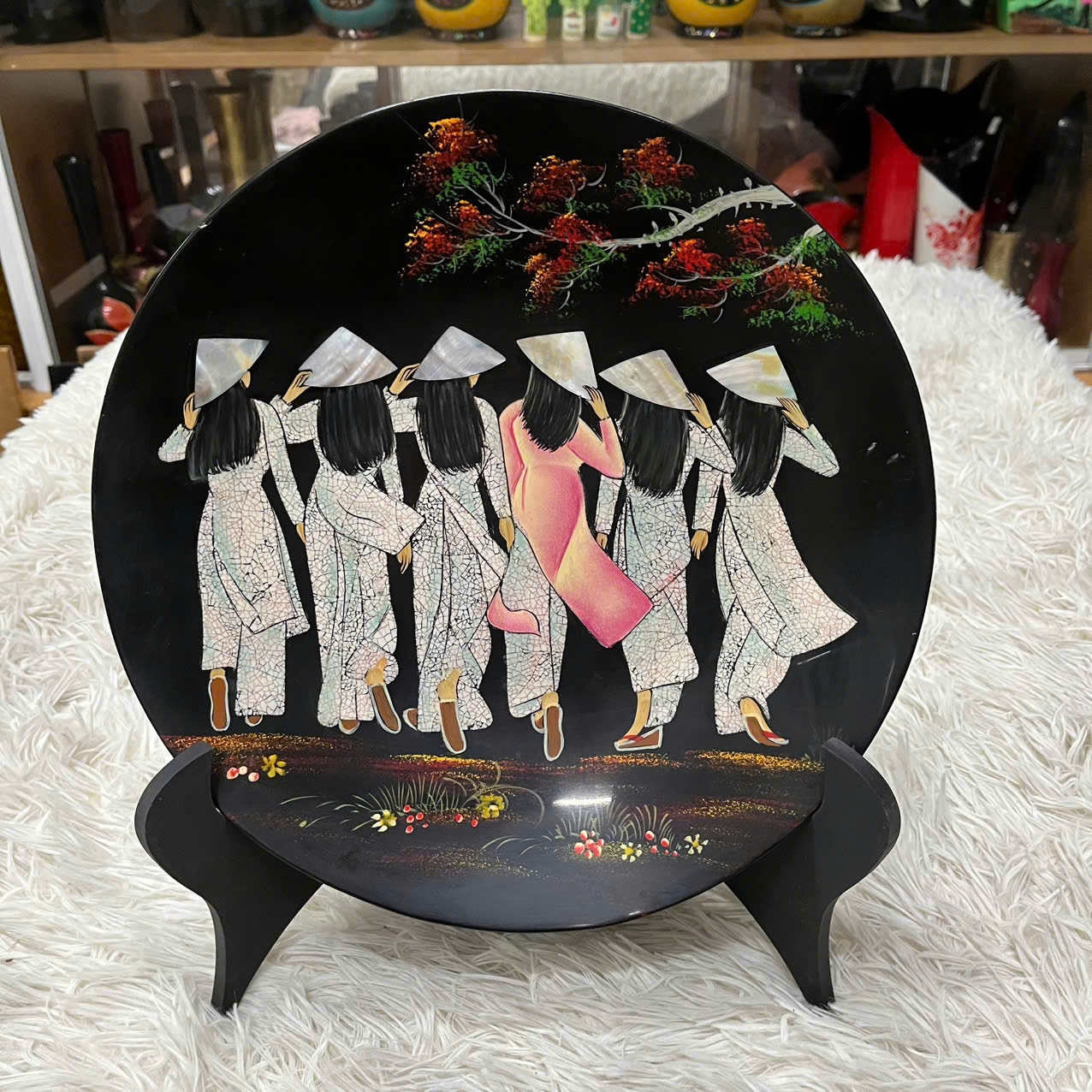 ️Tên sản phẩm: Dĩa sơn mài cô gái áo dài Việt Nam - Hàng thủ công mỹ nghệ Việt Nam