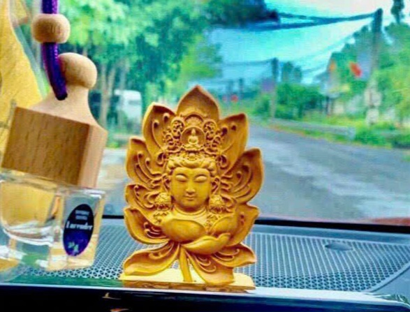 _ Diện phật hoa sen để ôtô được làm bằng chất liệu gỗ bách xanh tự nhiên 100%