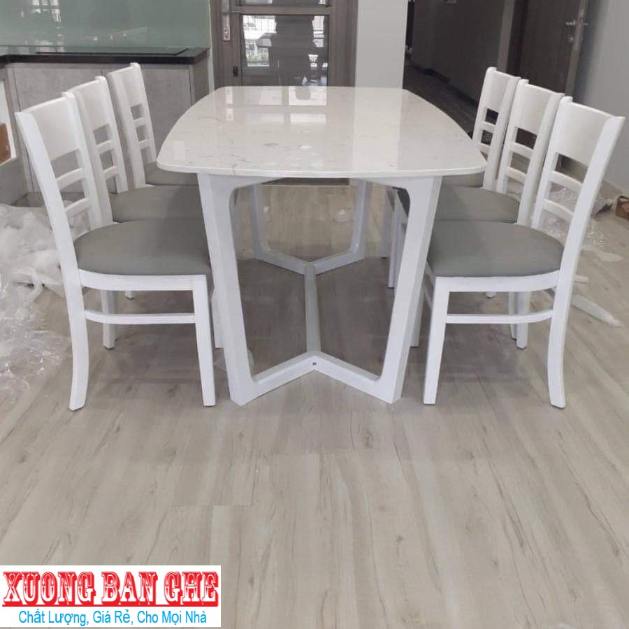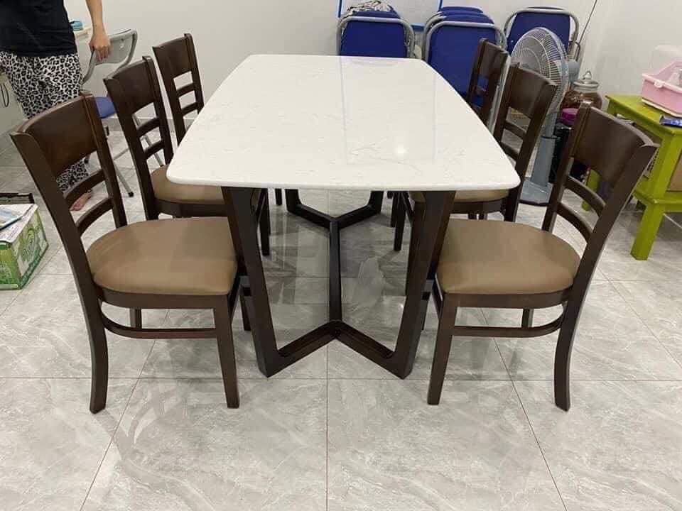 - Bộ bàn 6 ghế đá 1m6 được sản xuất từ gỗ cao su và mặt bàn là chất liệu đá ceramic chống ẩm chống trầy nhập khẩu Malaysia rất thích hợp làm bàn cafe, bàn thức ăn ở cửa hàng fastfood, bàn văn phòng công ty,…