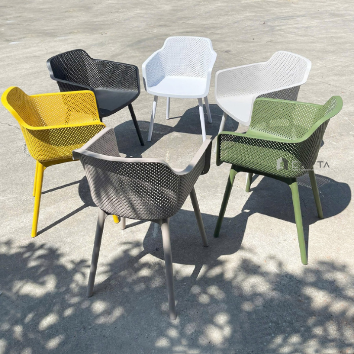 Với thiết kế tối ưu, chất liệu bền bỉ và tính năng tiện ích, ghế cafe nhựa đúc có tay CC1581-S là lựa chọn tuyệt vời cho những không gian quán cafe, nhà hàng hay khu vực ăn uống ngoài trời. Tại Capta, chúng tôi cam kết mang đến sản phẩm chất lượng cao, giá cả hợp lý và dịch vụ tư vấn tận tình để giúp bạn chọn lựa được sản phẩm phù hợp nhất cho không gian của mình.