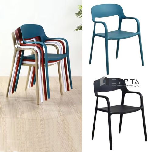 Ghế xếp chồng gọn gàng tiết kiệm diện tích lưu kho. Kiểu dáng sang trọng đẹp mắt phù hợp ghế ăn, ghế tiếp khách, ghế hội nghị, hội trường có tay, ghế quán cafe, trà sữa fastfood,…