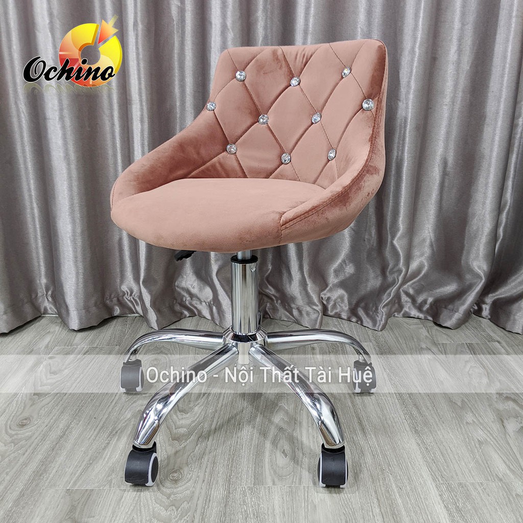 Ghế Trang Điểm Xoay Bánh Xe, Ghế Xoay Văn Phòng Mẫu Nỉ Nhung Đính Đá Phong Cách Hiện Đại ( Hình Thật Shop Chụp)
