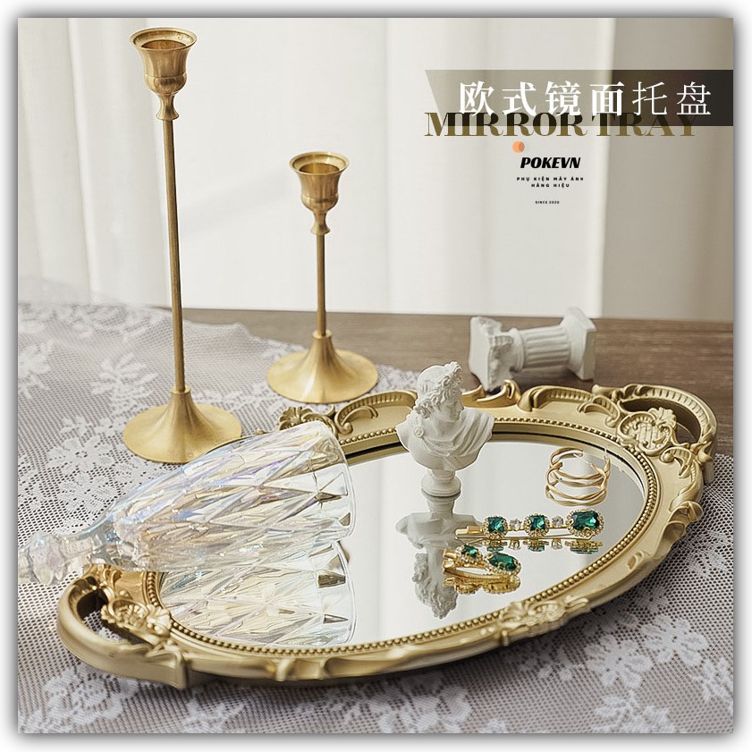 Gương retro phong cách châu Âu, khay gương dùng làm đạo cụ chụp ảnh, chụp ảnh trang sức