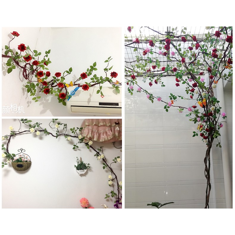 Giới thiệu Hoa giả, dây hoa hồng trà cao cấp trang trí tường nhà dài 1m8