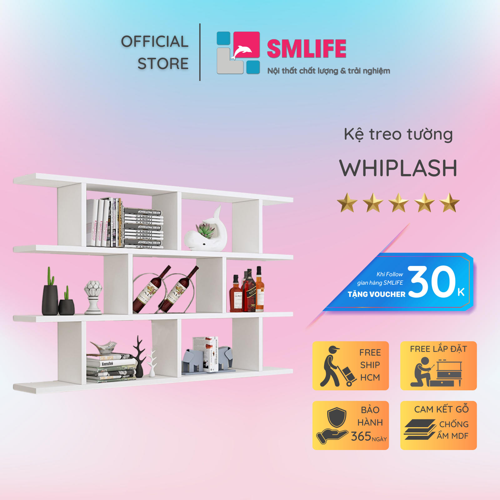 Mang đậm phong cách nội thất đơn giản, kệ gỗ trang trí gắn tường Wesley là một sự bổ sung hoàn hảo cho căn hộ hay văn phòng của bạn. Kệ gỗ Wesley được thiết kế theo phong cách đơn giản, hiện đại giúp bạn thoải mái trang trí sách hay các vật dụng trang trí an toàn. Sử dụng vật liệu ván ép công nghiệp MDF chống ẩm phủ Melamine cao cấp giúp kệ gỗ trang trí SMLIFE có độ bền cao, chống trầy và chống ẩm rất tốt. Bạn có thể tự lắp đặt sản phẩm dễ dàng với các phụ kiện và hướng dẫn đi kèm.