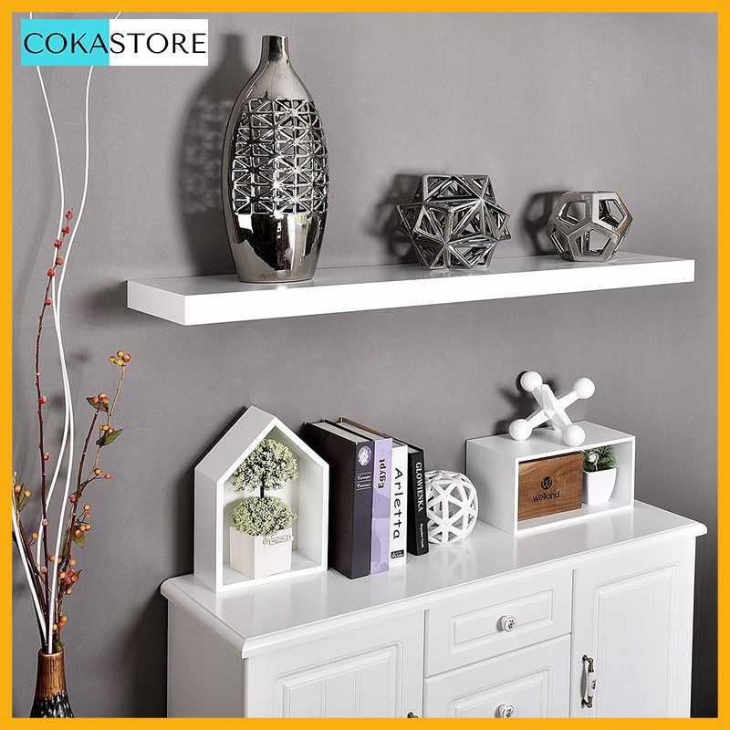 Giới thiệu Kệ Gỗ Treo Tường Thanh Ngang Kết Cấu Giấu Chân Chắc Chắn, Gỗ Dày 2,5cm (Màu Trắng) + Tặng Kèm Thước Thủy
