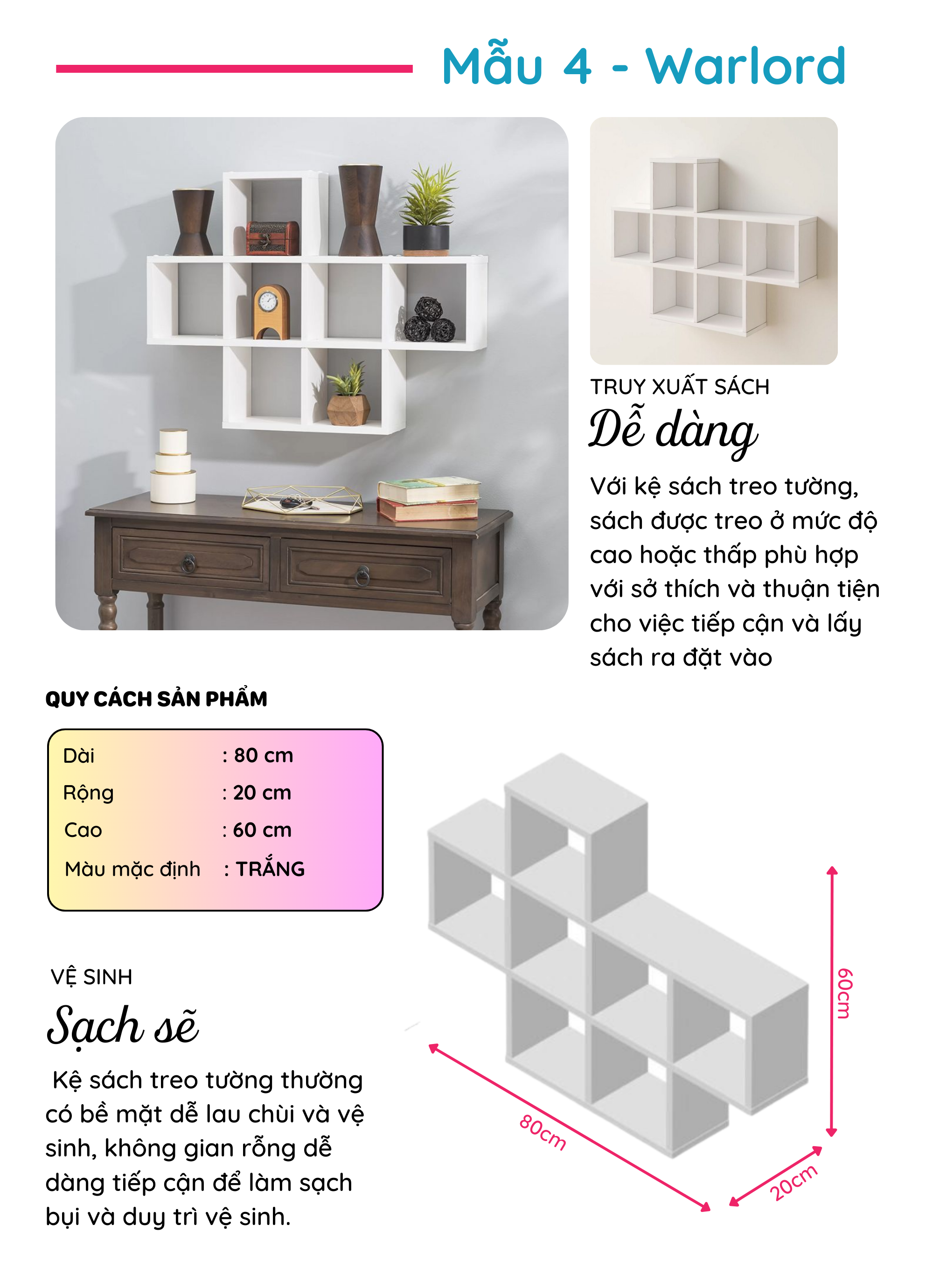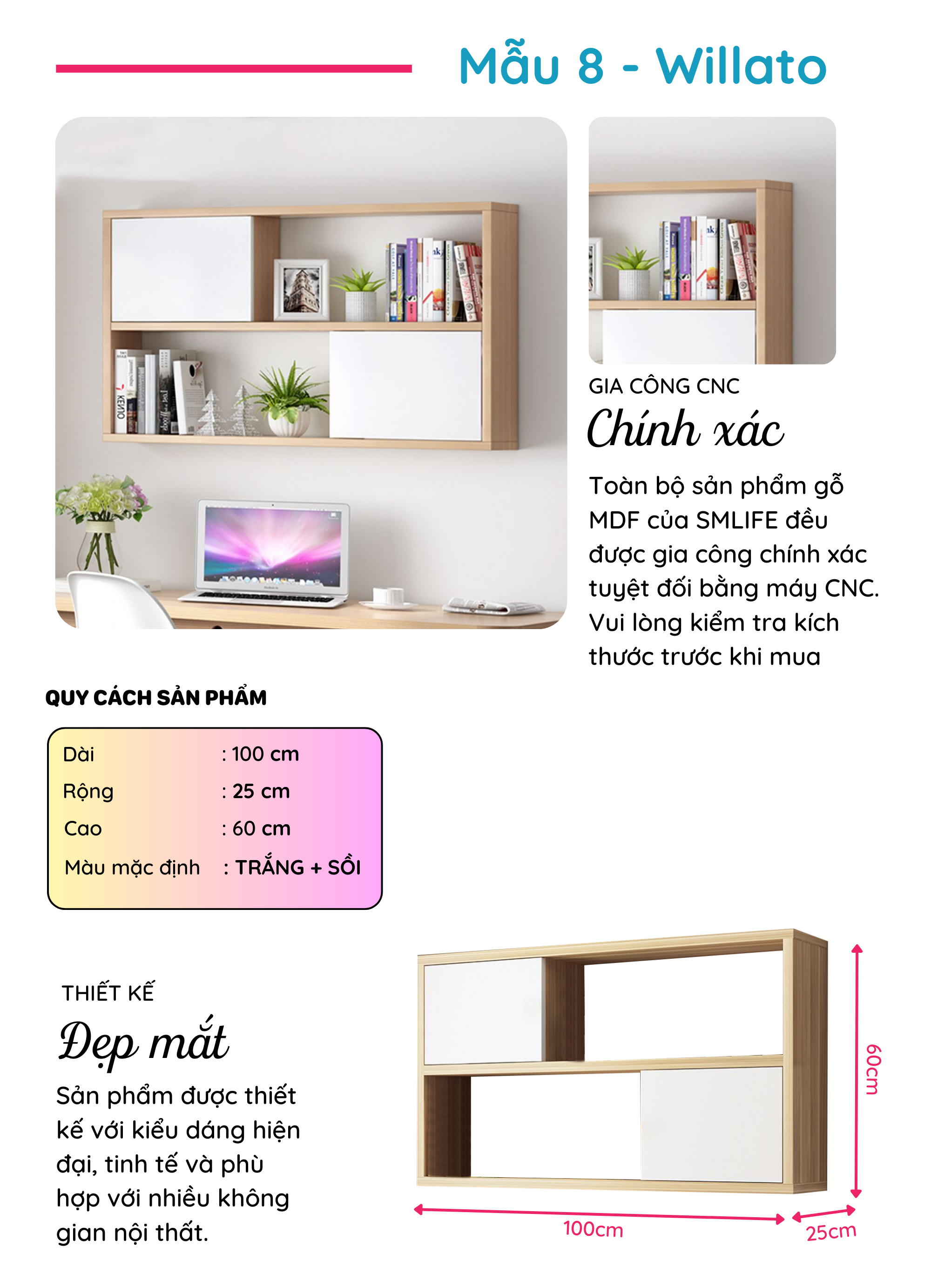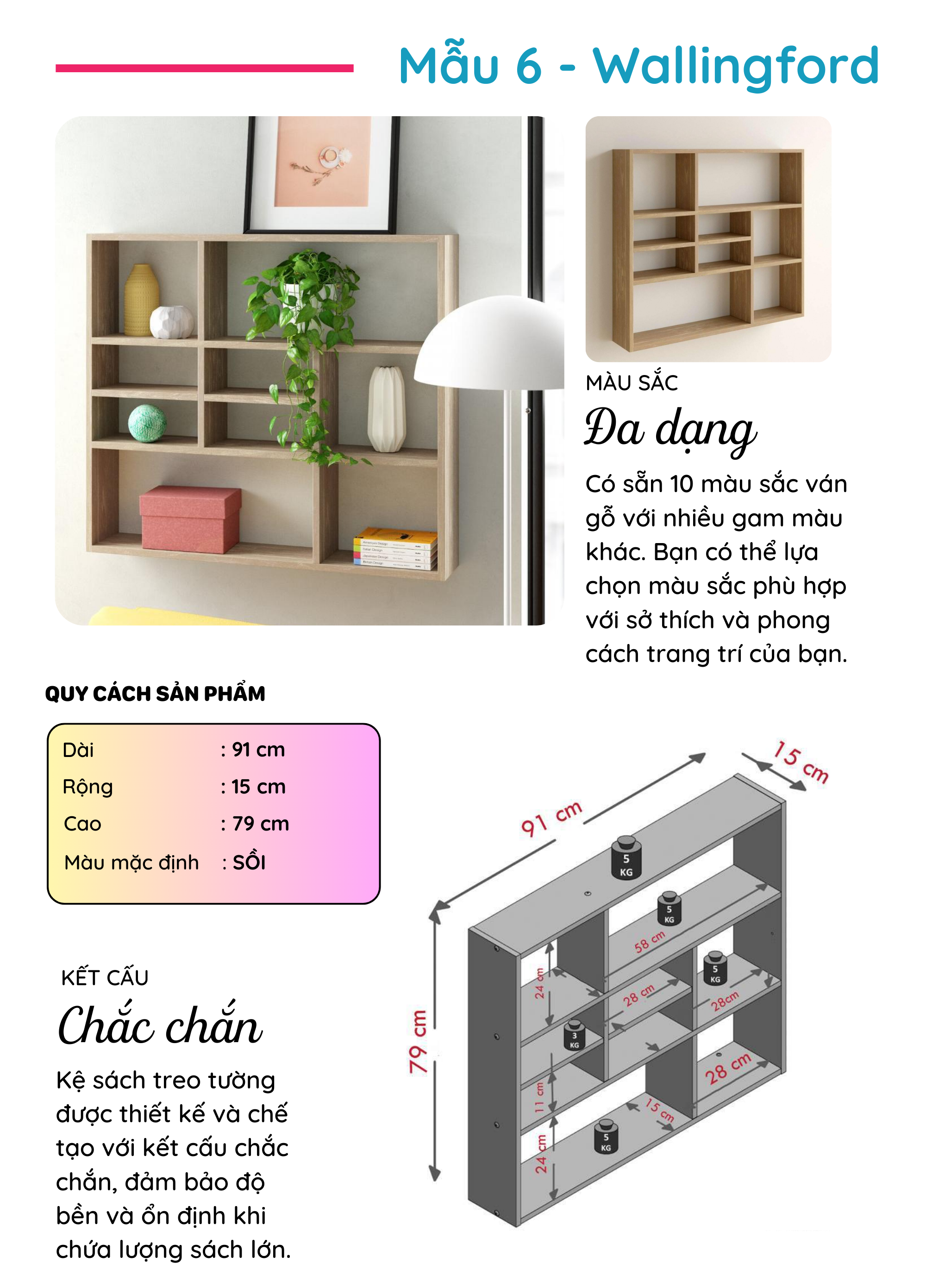 Giới thiệu Kệ Sách Treo Tường Gỗ Phong Cách Hiện Đại Thương Hiệu SMLIFE (Nhiều mẫu, có thể đổi Size và màu sắc)