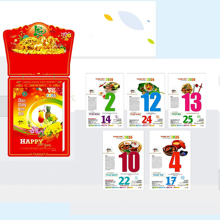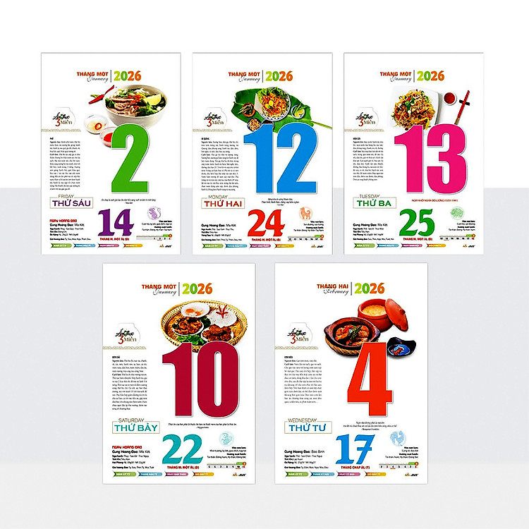 Lịch bloc Mỗi ngày món ăn dinh dưỡng khổ lịch 20*30 Bính Ngọ Ẩm Thực Món Ngon Người Việt kích thước tổng 60cm năm 2026