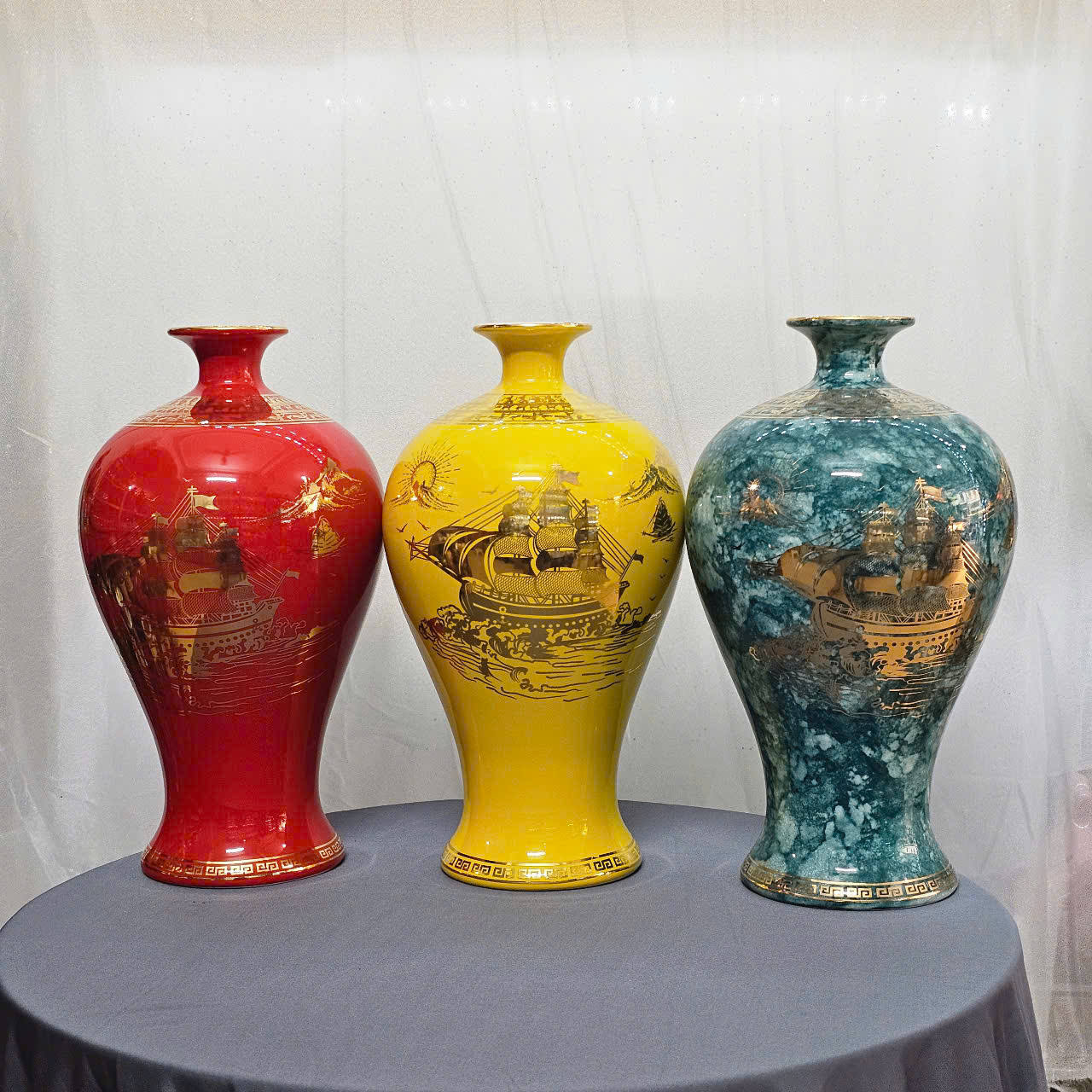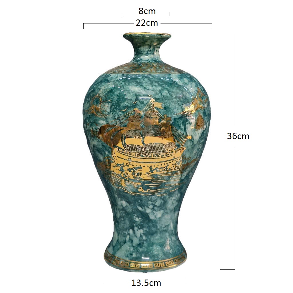 Giới thiệu Mai bình tích lộc thuận buồm xuôi gió vẽ vàng 18k gốm sứ Bát Tràng (cao36cm)