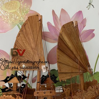 + 01 Mô hình thuyền gỗ Tàu buôn cổ Hạ Long Rồng - Gỗ Hương - Thân tàu dài 40cm - Buồm gỗ