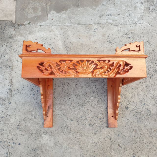 Giới thiệu Bàn thờ treo tường gỗ xoan trạm rồng ngang 40 cm gồm 1bộ ke đế