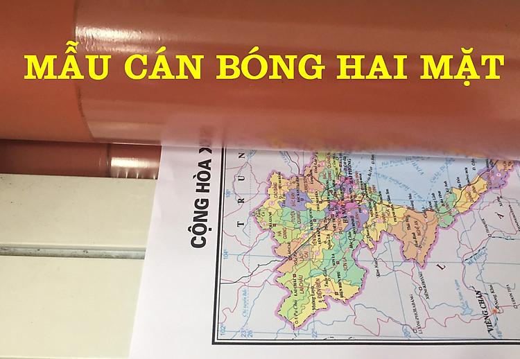 - Được cán bóng màng Bopp trong suốt bằng máy nhiệt chuyên dụng lên mặt trước và mặt sau bản đồ, để cho bản bản có độ bền rất cao, chống bạc mầu, chống ngấm nước, mặt bản đồ nhẵn bóng như mặt kính, làm tăng độ thẩm mỹ bản đồ. Trên thị trường cán bóng có 1 mặt hoặc không mêu tả gì là không có cán bóng (mêu tả Bồi nghĩa là chỉ cán bóng mặt trước bản đồ bằng màng trong suốt dày, rất cứng, khi mở ra bản đồ cuộn lò xo rất khó sử dụng)
