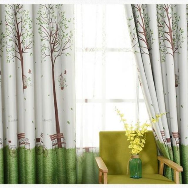 Nhà cửa & Đời sống > Trang trí nhà cửa > Rèm cửa, màn che || Rèm treo cửa mẫu cây xanh và lồng chim (1x2.7m, 2x2.7m, 3x2.7m)