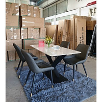 Bộ bàn ăn mặt đá phiến ceramic kết hợp ghế Cross