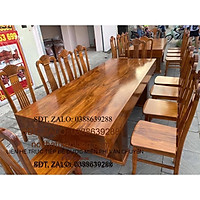 Bàn Ăn 10 Ghế Đục Chữ Thọ Lệch Gỗ Cẩm Vàng