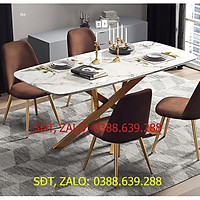 Bàn ăn mặt đá - Bàn ăn mặt đá ceramic bóng chân chéo chữ x kết hợp ghế Loft Trám