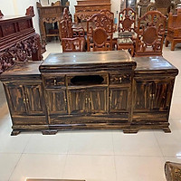 Kệ tivi mõ lồi đồng tiền 2m40 gỗ mun hoa Lào
