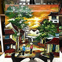 Tranh sơn mài phố cổ vẽ màu cẩn trứng đẹp , hàng xuất khẩu 50x50 cm