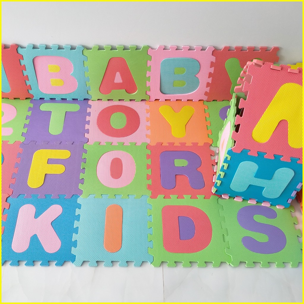 Giới thiệu Thảm xốp cho bé 36 tấm (26 chữ cái từ A-Z và 10 chữ số từ 0-9)- Kích thước mỗi tấm 30x30x1cm- Mẹ Tròn Store