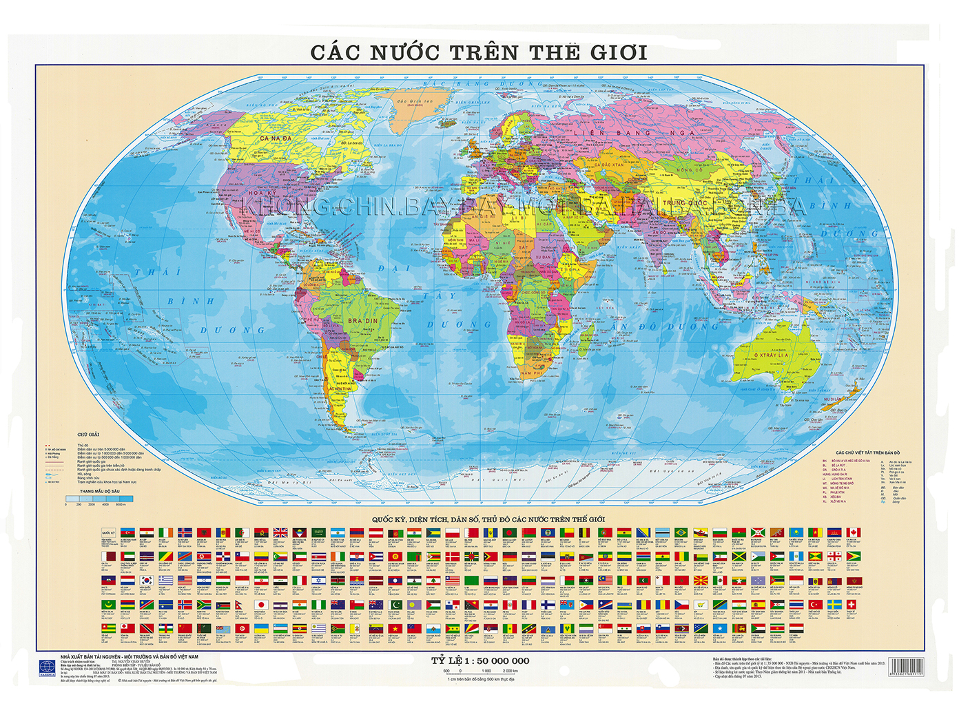 • Thế giới tiếng Việt A1 54x 75cm, tỷ lệ 1 : 56.000.000 xuất bản tháng 1 năm 2018 (mới nhất đến thời điểm hiện tại)