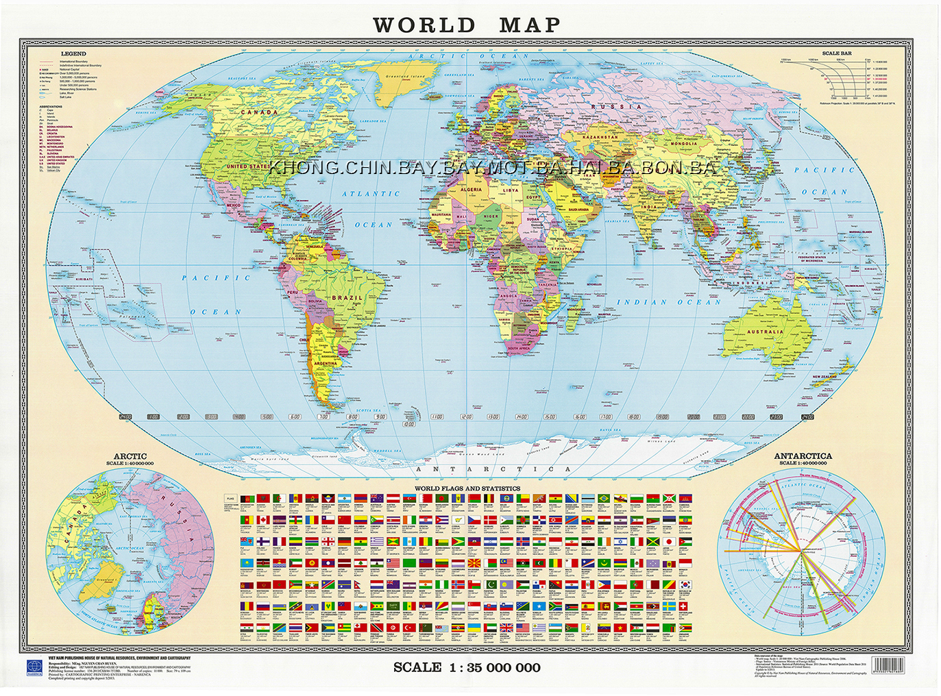 • Thế giới tiếng việt A0 79x109cm, tỷ lệ 1 : 35.000.000 xuất bản tháng 4 năm 2024 (mới nhất đến thời điểm hiện tại)