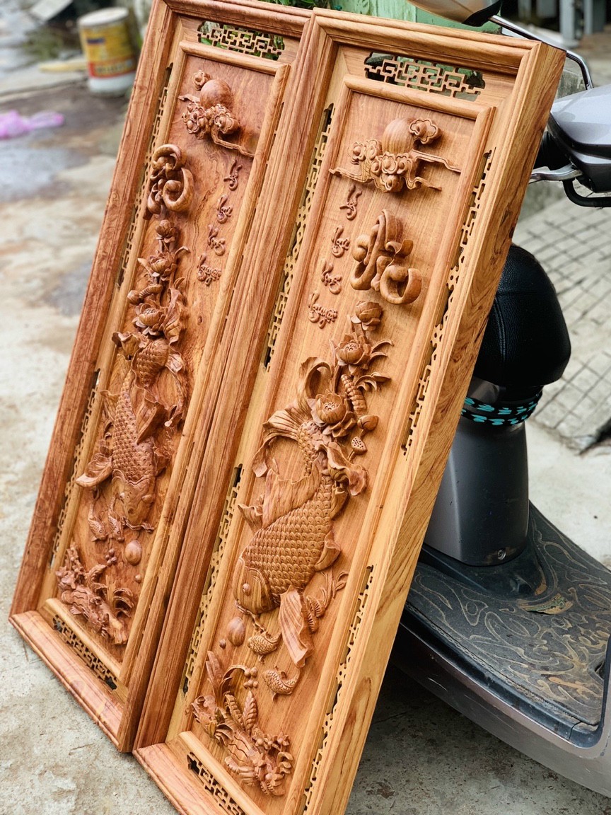_ Tranh điêu khắc lý ngư vọng nguyệt được trạm khắc vô cùng tỉ mỉ ,tinh sảo kỳ công .Đi hầu hết tất cả mọi chi tiết góc ngách ,nội dung hoa văn của tranh đều được gọt tỉa chỉnh sửa hoàn toàn bằng tay thủ công .Đồng thời tranh được kiểm định kỹ lưỡng khắt khe ,Như cho vào thẩm sấy cho gỗ khô kiệt .Mục đích trống dập nứt vênh mo mối mọt ,Kết hợp với trà nhám đánh giấy giáp nhiều nước sờ mát lạnh ,Rồi cho vào phun lót làm bóng mờ để giữ lại mầu sắc vân gỗ tự nhiên ,Cặp tranh được làm và hoàn thiện do bàn tay khối óc tài hoa ,Từ những người thợ giàu kinh nghiệm ,Cũng như tay nghề cao trong làng nghề truyền thống .Chính vì thế cặp lý ngư vọng nguyệt đã đáp ứng đầy đủ mọi tiu trí ( Đẹp bền rẻ ) Thẩm mỹ nghệ thuật với chất lượng tuyệt vời