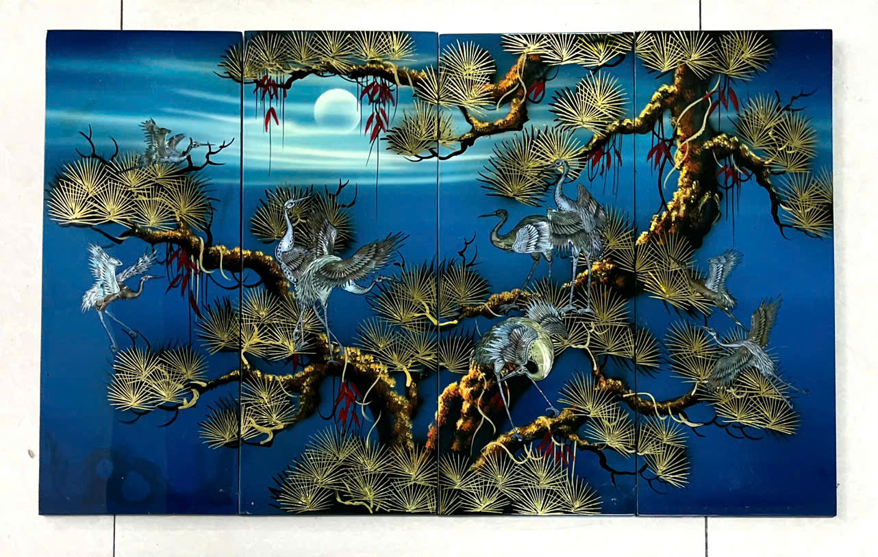 Bộ tranh sơn mài Tùng Hạc khảm cừ 4 tấm là sự kết hợp hoàn hảo giữa nghệ thuật thủ công truyền thống và giá trị phong thủy sâu sắc. Được chế tác công phu trên nền sơn mài cao cấp, khảm vỏ trai (ốc cừ) tỉ mỉ, bộ tranh không chỉ là vật phẩm trang trí mà còn mang thông điệp trường thọ, tài lộc, bình an và hưng thịnh.