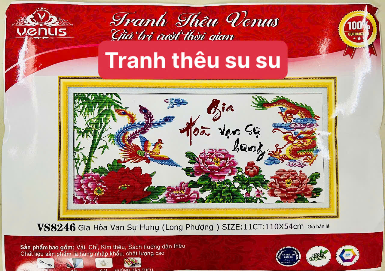 Tên tranh: Tranh thêu chữ thập Gia hoà vạn sự hưng