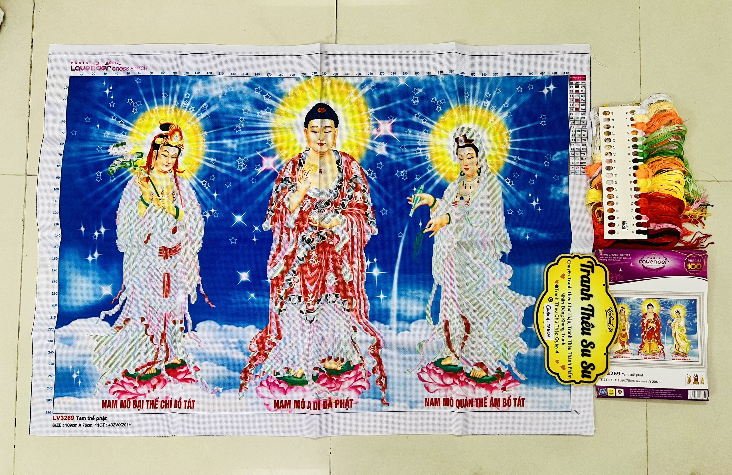 Tên tranh: Tranh thêu chữ thập Tam thế phật