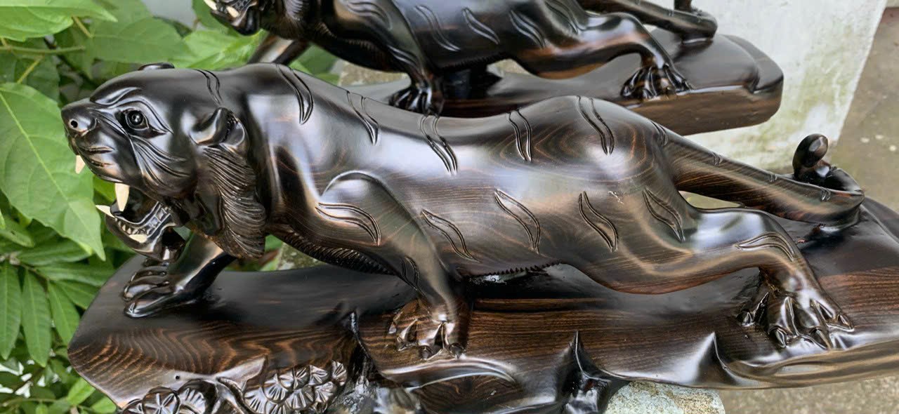 _ Tượng con hổ chú tể sơn lâm phong thủy được làm bằng chất liệu gỗ mun hoa liền khối tự nhiên 100%