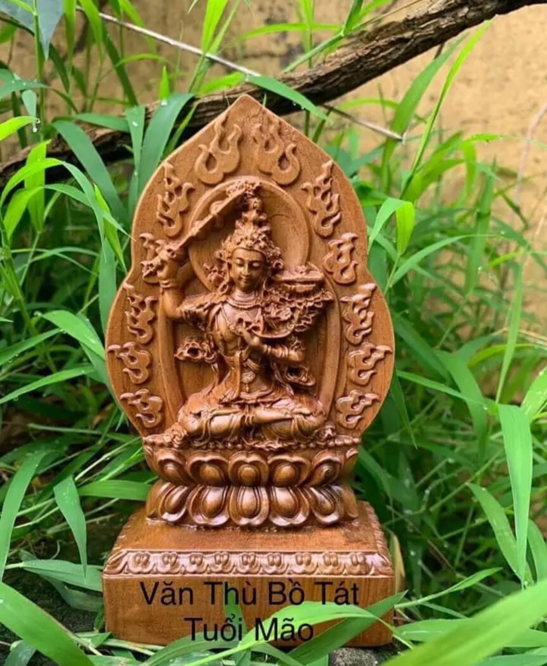 _ Tượng văn thù bồ tát hợp tuổi mão được làm bằng chất liệu gỗ bách xanh liền khối tự nhiên 100%