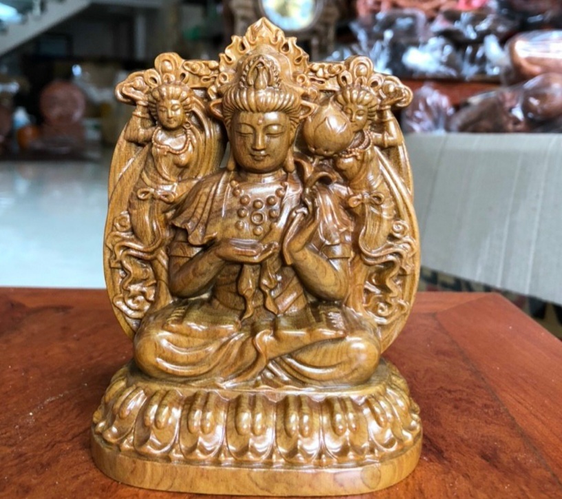 _ Tượng phật như lai đại thế chí bồ tát hợp tuổi ngọ ,được làm bằng chất liệu gỗ bách xanh thơm phức liền khối tự nhiên 100%