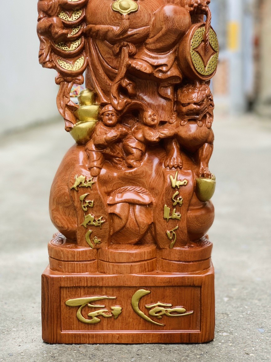 _ Tượng phật di lặc gánh cành đào được làm bằng chất liệu gỗ hương đá tự nhiên 100% ,Và sơn pu dát vàng cao cấp _ Kích thước cao 60×24×14cm_ Tượng phật di lặc gánh cành đào được trạm khắc tỉ mỉ tinh...
