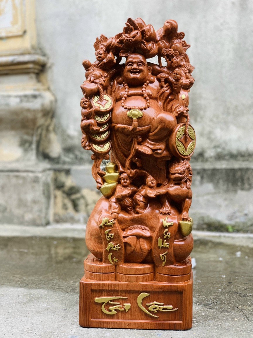 _ Tượng phật di lặc gánh cành đào được trạm khắc tỉ mỉ tinh sảo kỳ công .được làm và hoàn thiện do bàn tay khối óc tài hoa .Từ những người thợ dầy rặn kinh nghiệm cũng như tay nghề cao trong làng nghề truyền thống .Chính vì thế tượng phật di lặc đã đáp ứng đầy đủ những tiêu trí ( Đẹp bền rẻ ) Thẩm mỹ nghệ thuật với chất lượng tuyệt vời