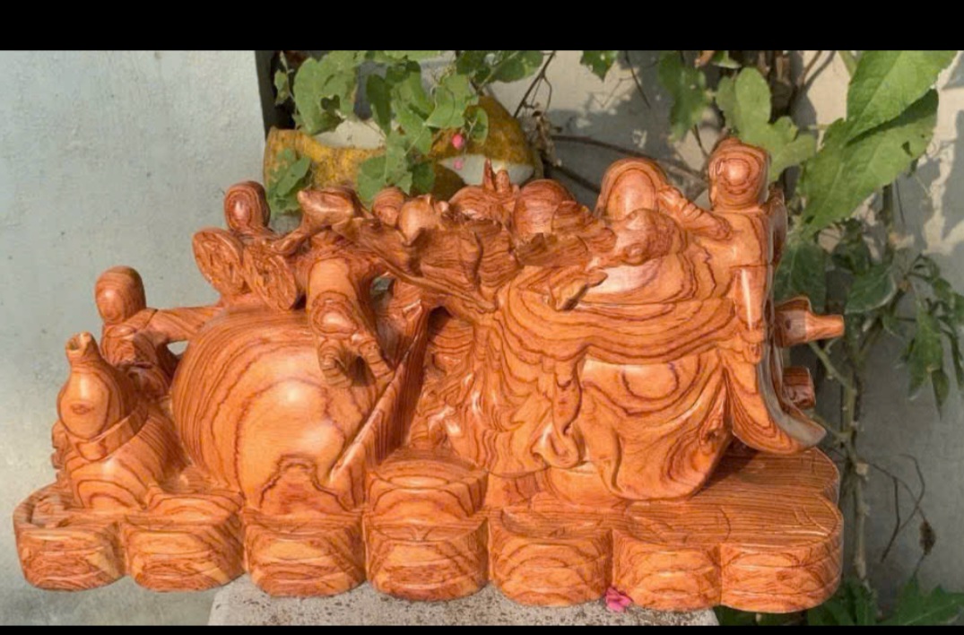 _ Tượng được chạm khắc gọt tỉa vô cùng tỉ mỉ tinh xảo kỳ công. Đi hầu hết tất mọi chi tiết góc ngách nội dung hoa văn của tượng đều được gọt tỉa chỉnh sửa sắc nét hoàn toàn bằng tay thủ công truyền thống.