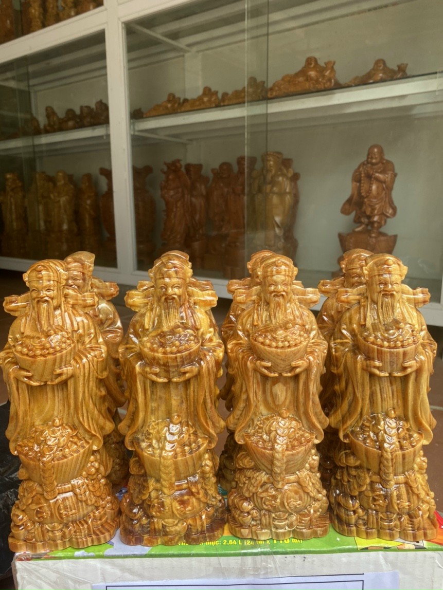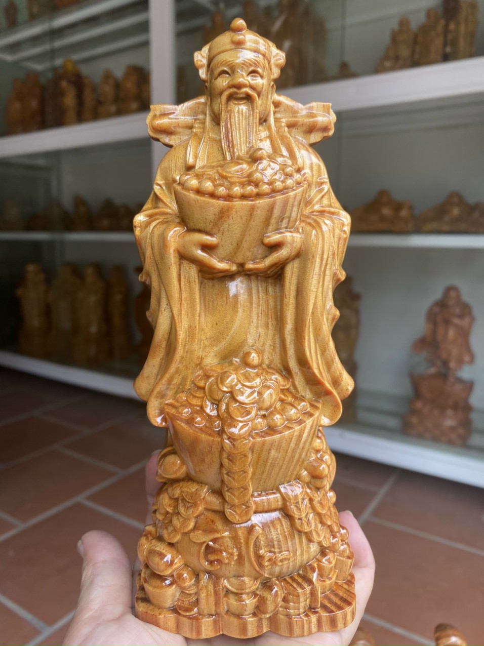 _ Tượng ông thần tài được trạm khắc tỉ mỉ ,Tinh sảo kỳ công .Đi hầu hết tất cả mọi tri tiết góc ngách của tượmg đều được gọt tỉa chỉnh sửa sắc nét hoàn toàn bằng tay thủ công .Tượng được làm và hoàn thiện do bàn tay khối óc tài hoa .Từ những người thợ dầy rặn kinh nghiệm ,Cũng như tay nghề cao trong làng nghề truyền thống .Chính vì thế tượng ông thần tài bằng gỗ huyết long đã đáp ứng đầy đủ mọi tiêu trí cần thiết như ( Đẹp bền rẻ ) Thẩm mỹ nghệ thuật với chất lượng tuyệt vời