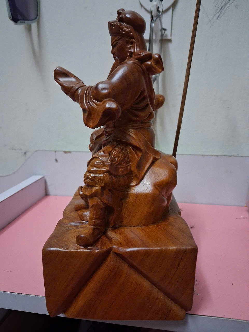 _ Tượng quan công đọc sách được làm bằng chất liệu gỗ hương đá liền khối tự nhiên 100%