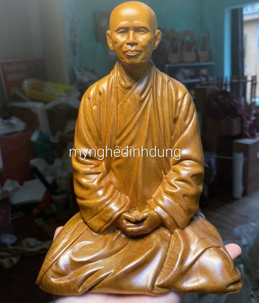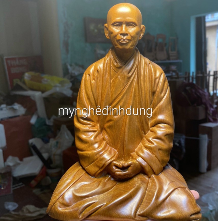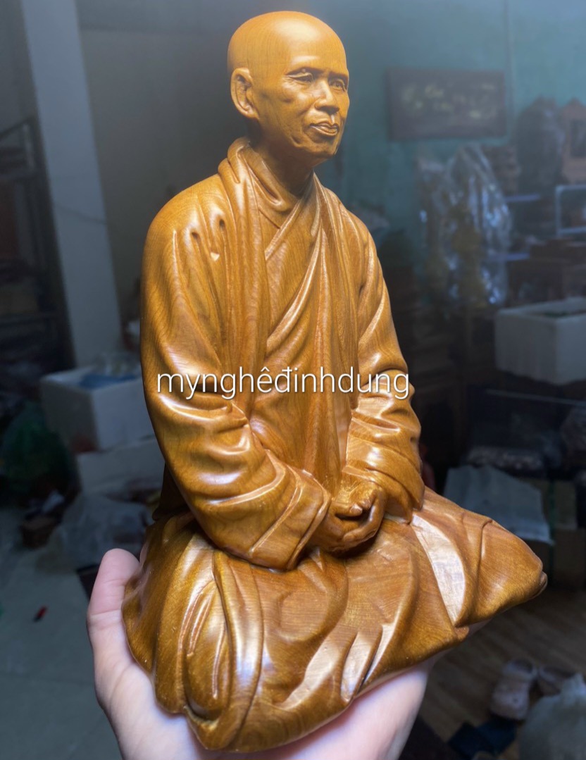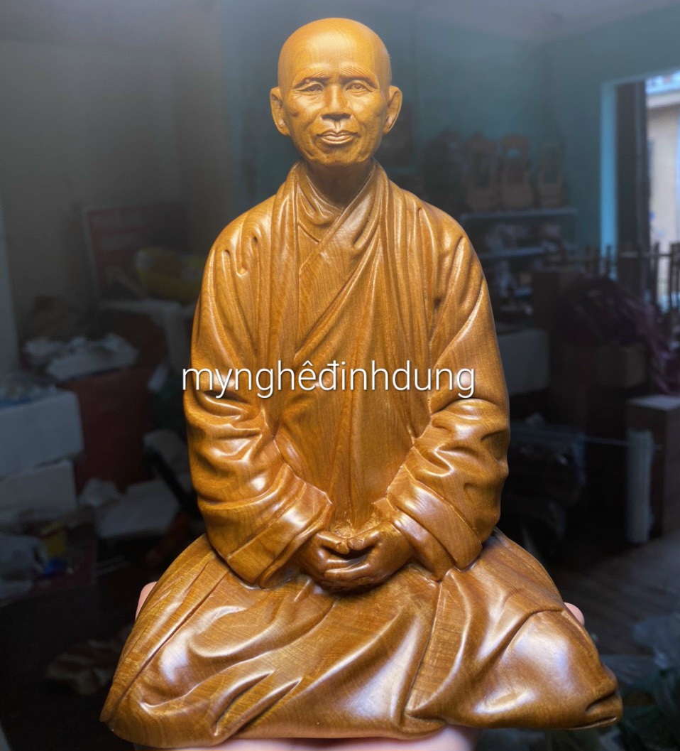 _ Tượng thiềm sư thích nhất hạnh được làm bằng chất liệu gỗ bách xanh liền khối tự nhiên 100%